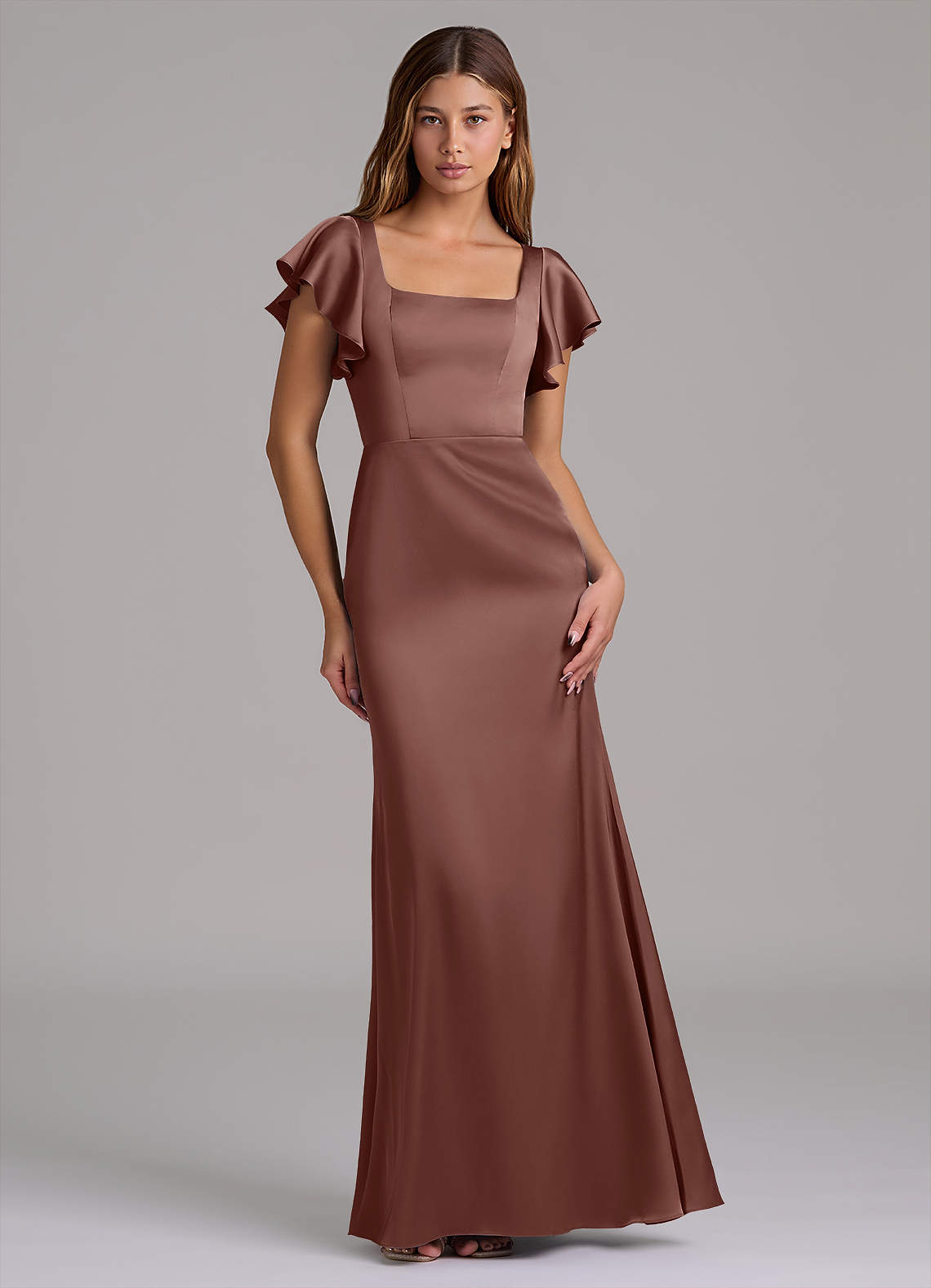 인어 스퀘어 네크라인 스트레치 새틴 바닥 길이 드레스