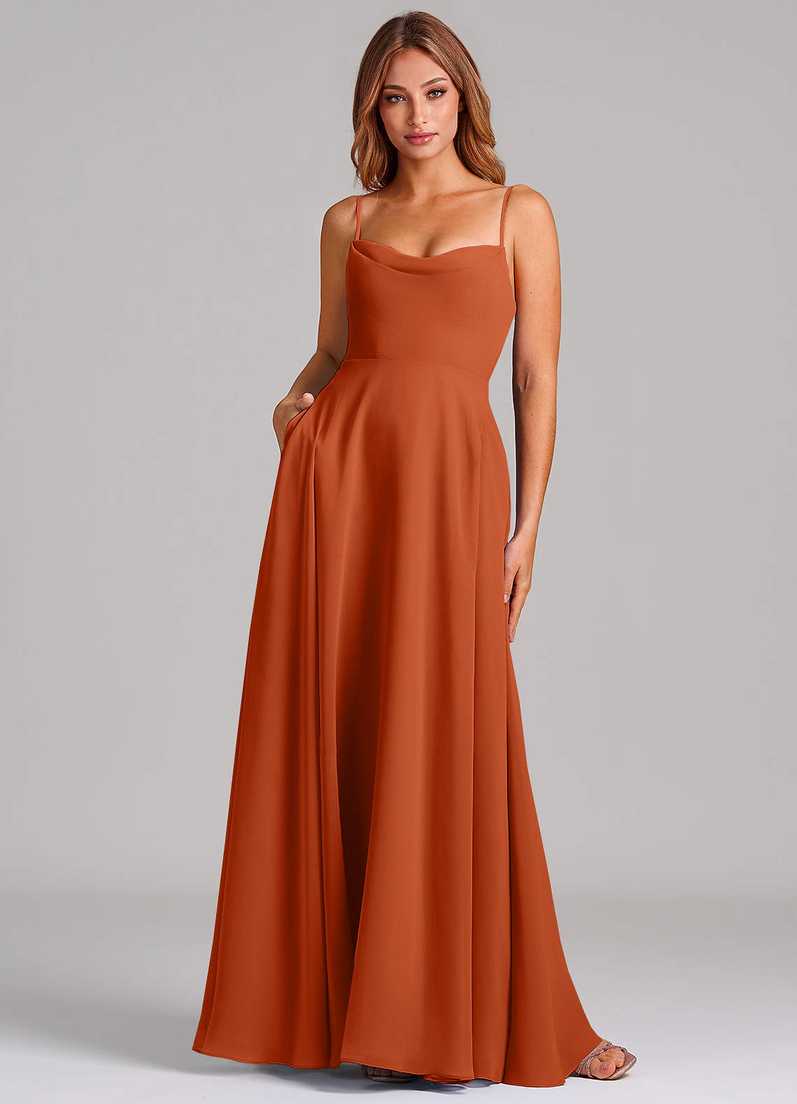 A라인 주름진 쉬폰 바닥 길이 드레스