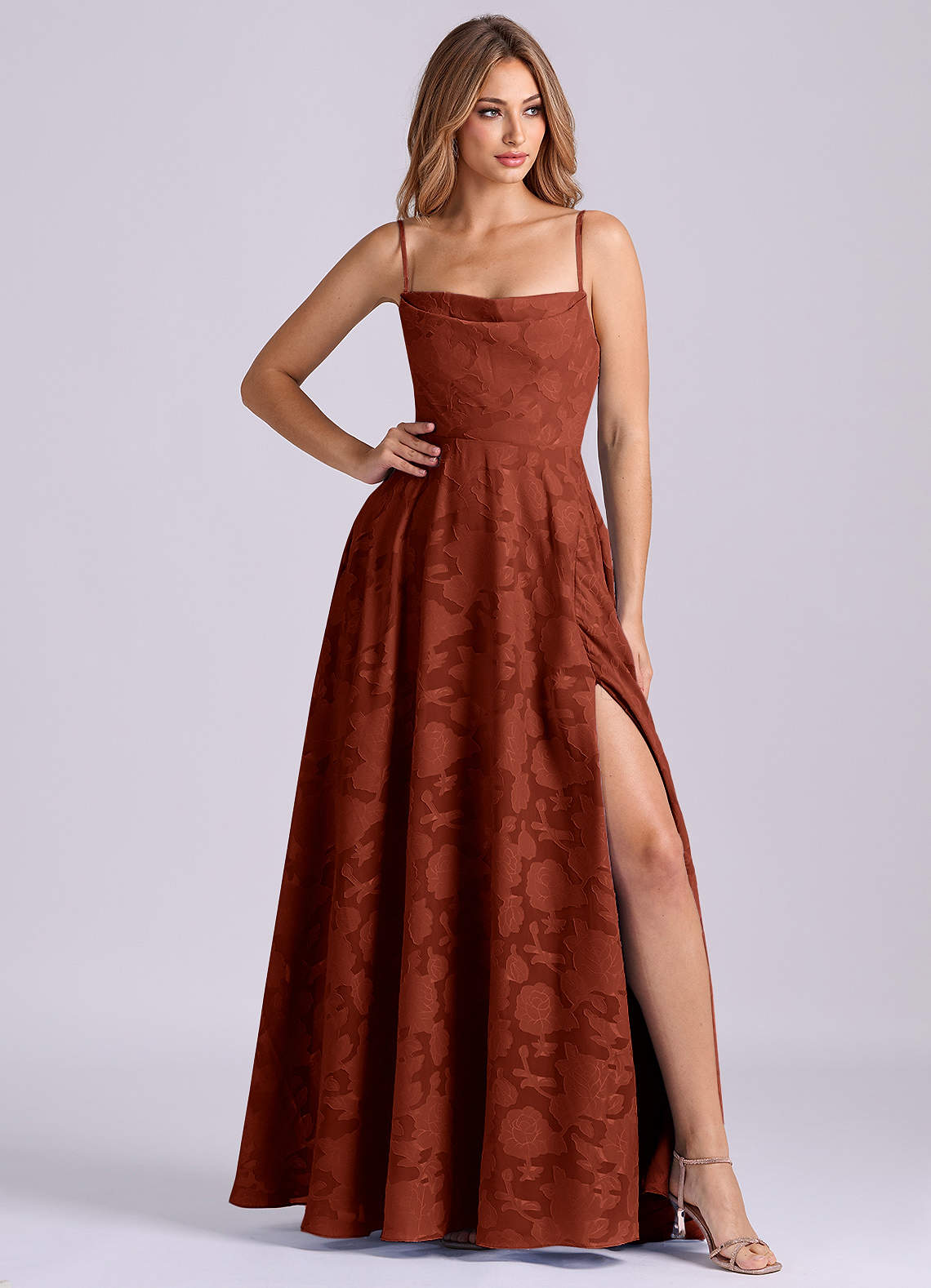 A라인 주름진 플로럴 번아웃 바닥 길이 드레스