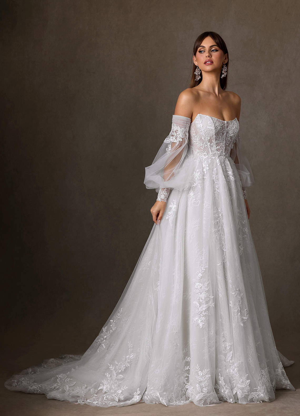 볼가운 스트랩리스 레이스 코트 트레인 드레스