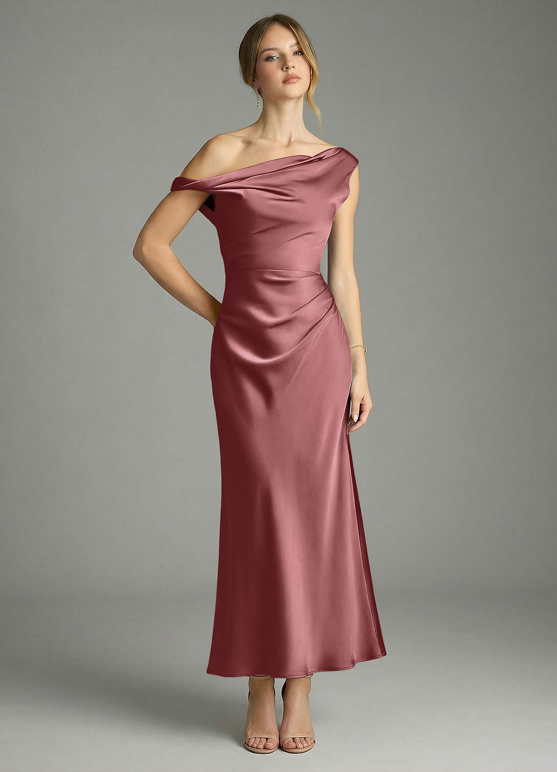 인어 오프 더 숄더 스트레치 새틴 발목 길이 드레스