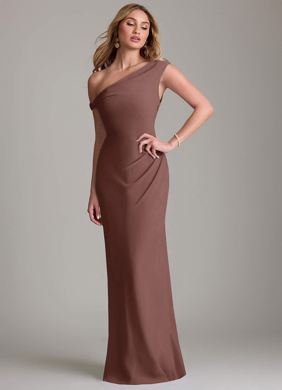 쉬스 오프 더 숄더 쉬폰 바닥 길이 드레스