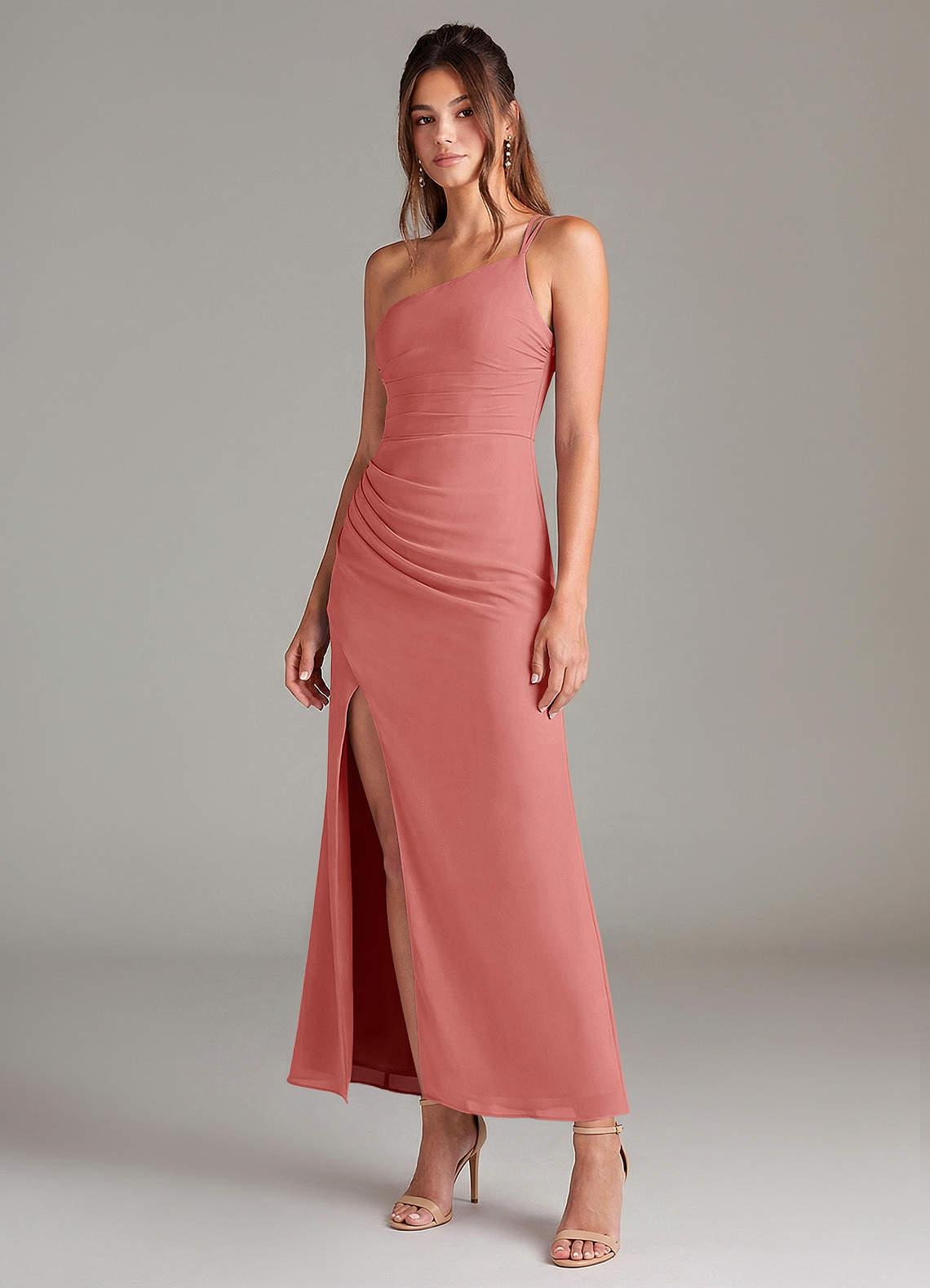 인어 한쪽 어깨 쉬폰 발목 길이 드레스