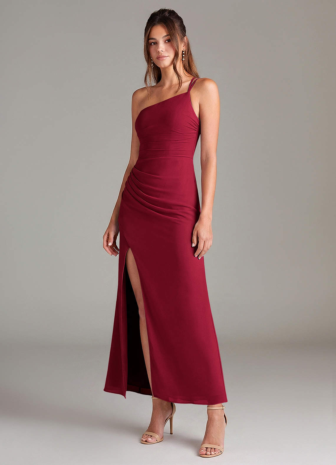인어 한쪽 어깨 쉬폰 발목 길이 드레스