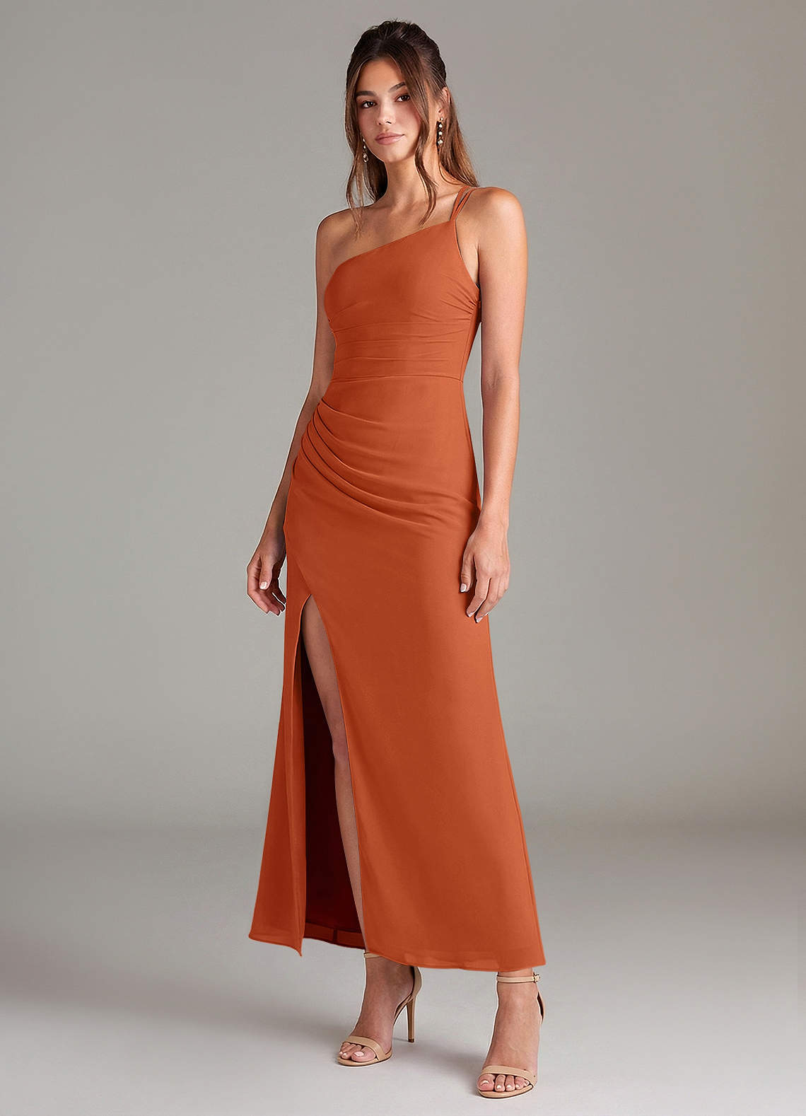 인어 한쪽 어깨 쉬폰 발목 길이 드레스