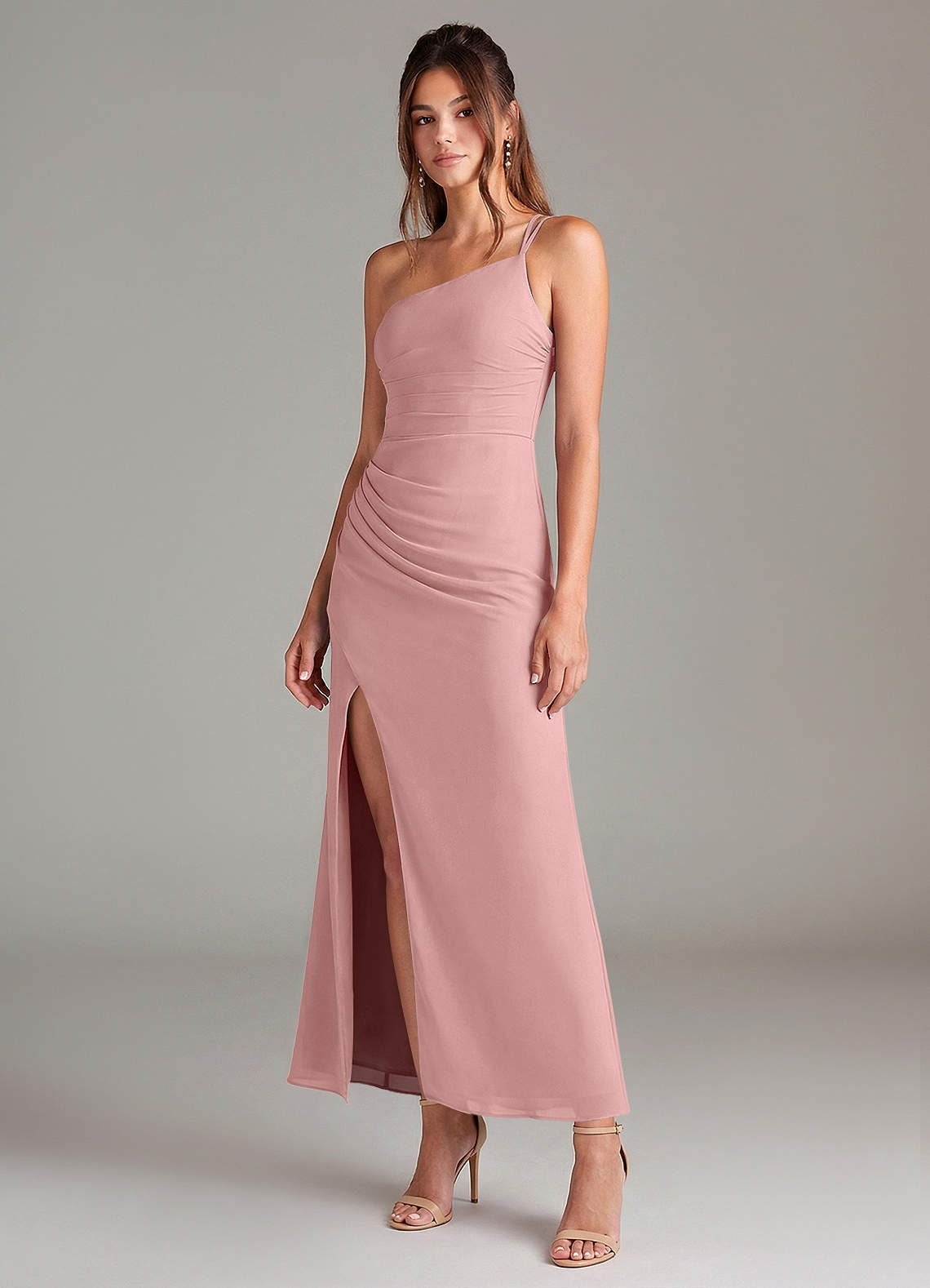 인어 한쪽 어깨 쉬폰 발목 길이 드레스