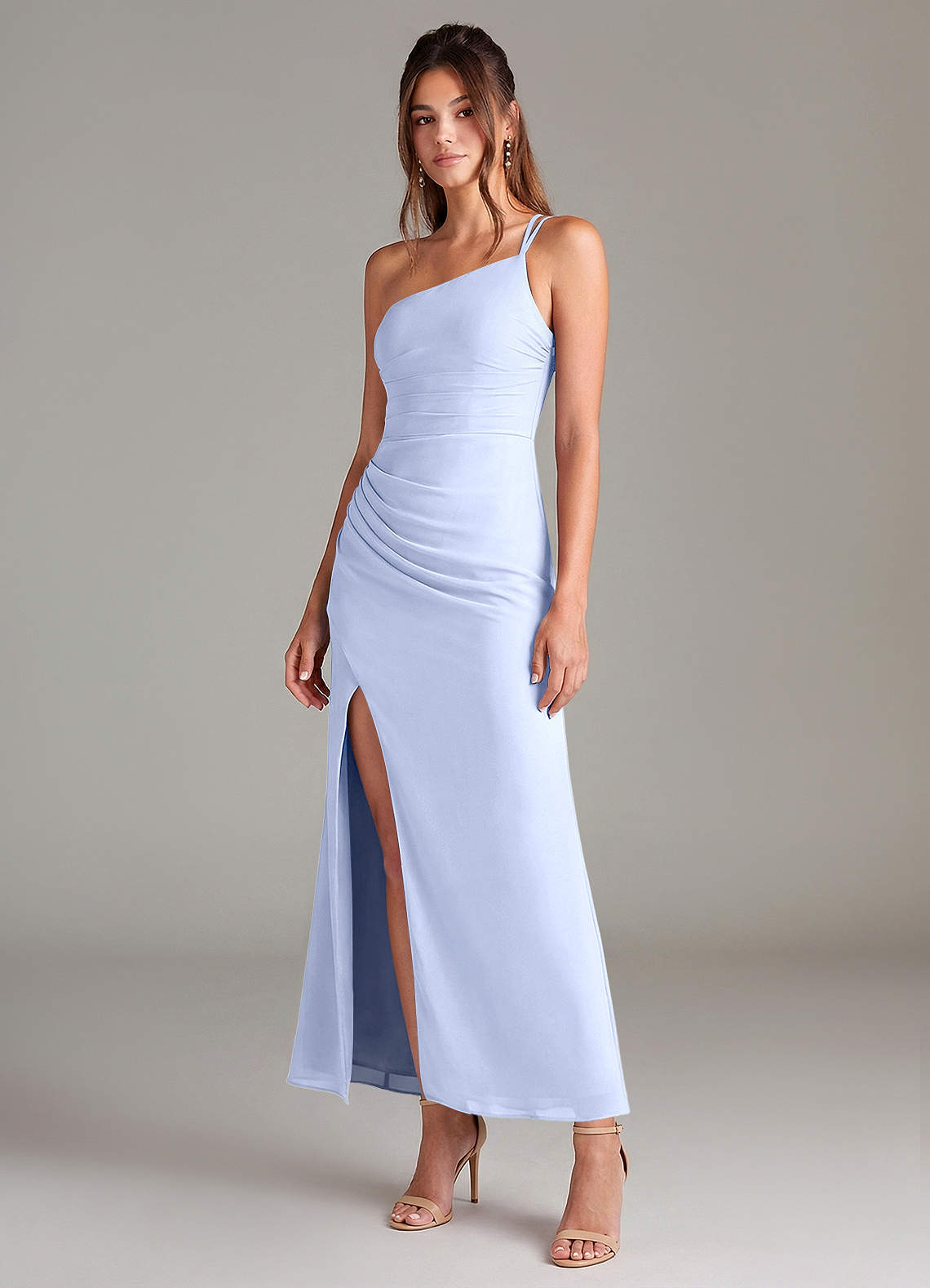 인어 한쪽 어깨 쉬폰 발목 길이 드레스