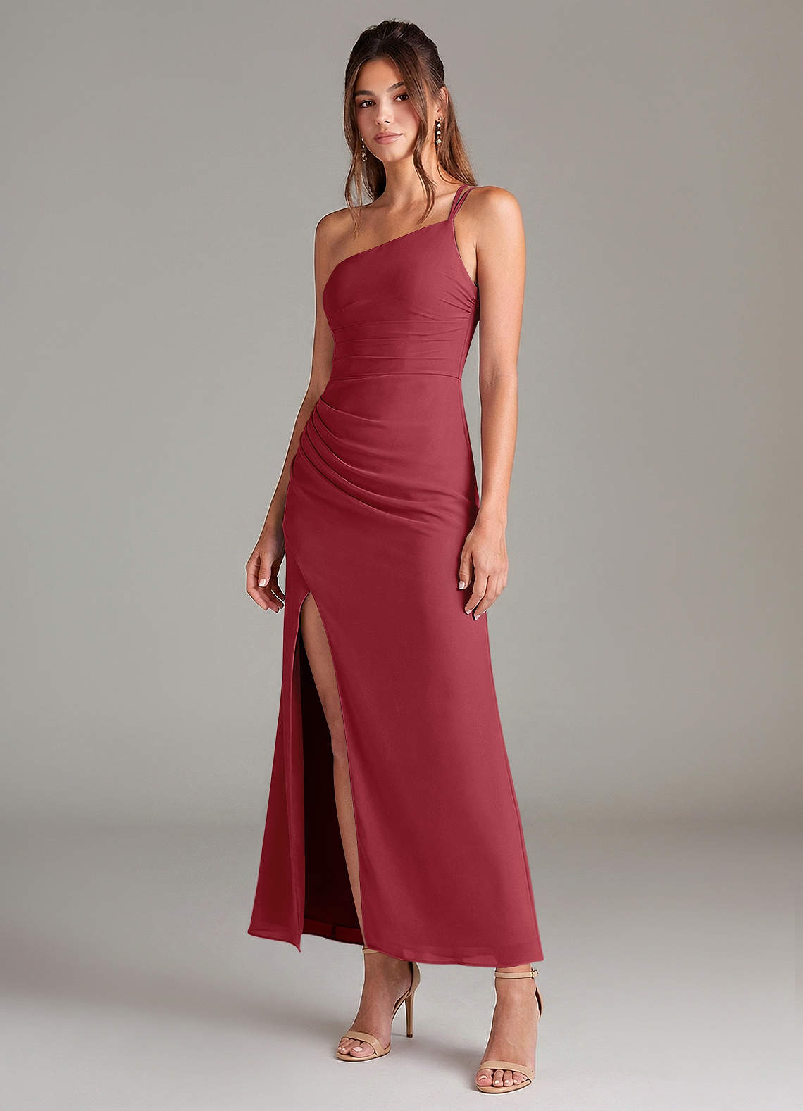 인어 한쪽 어깨 쉬폰 발목 길이 드레스