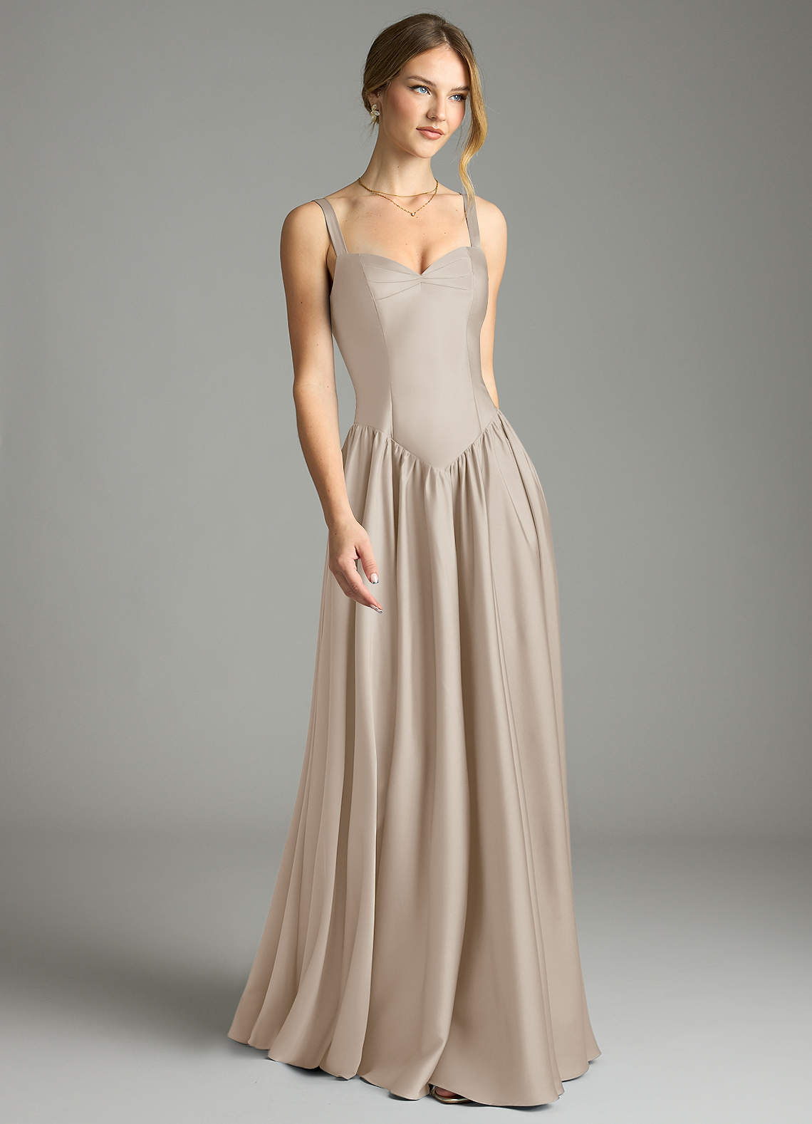 A라인 코르셋 스트레치 새틴 바닥 길이 드레스