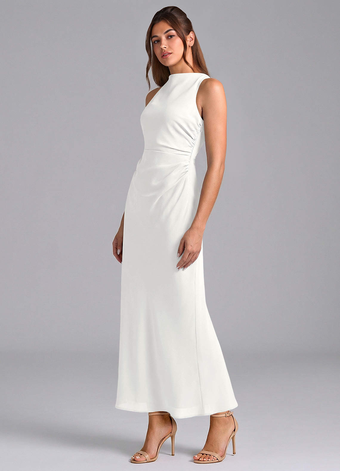 쉬스 주름진 쉬폰 발목 길이 드레스