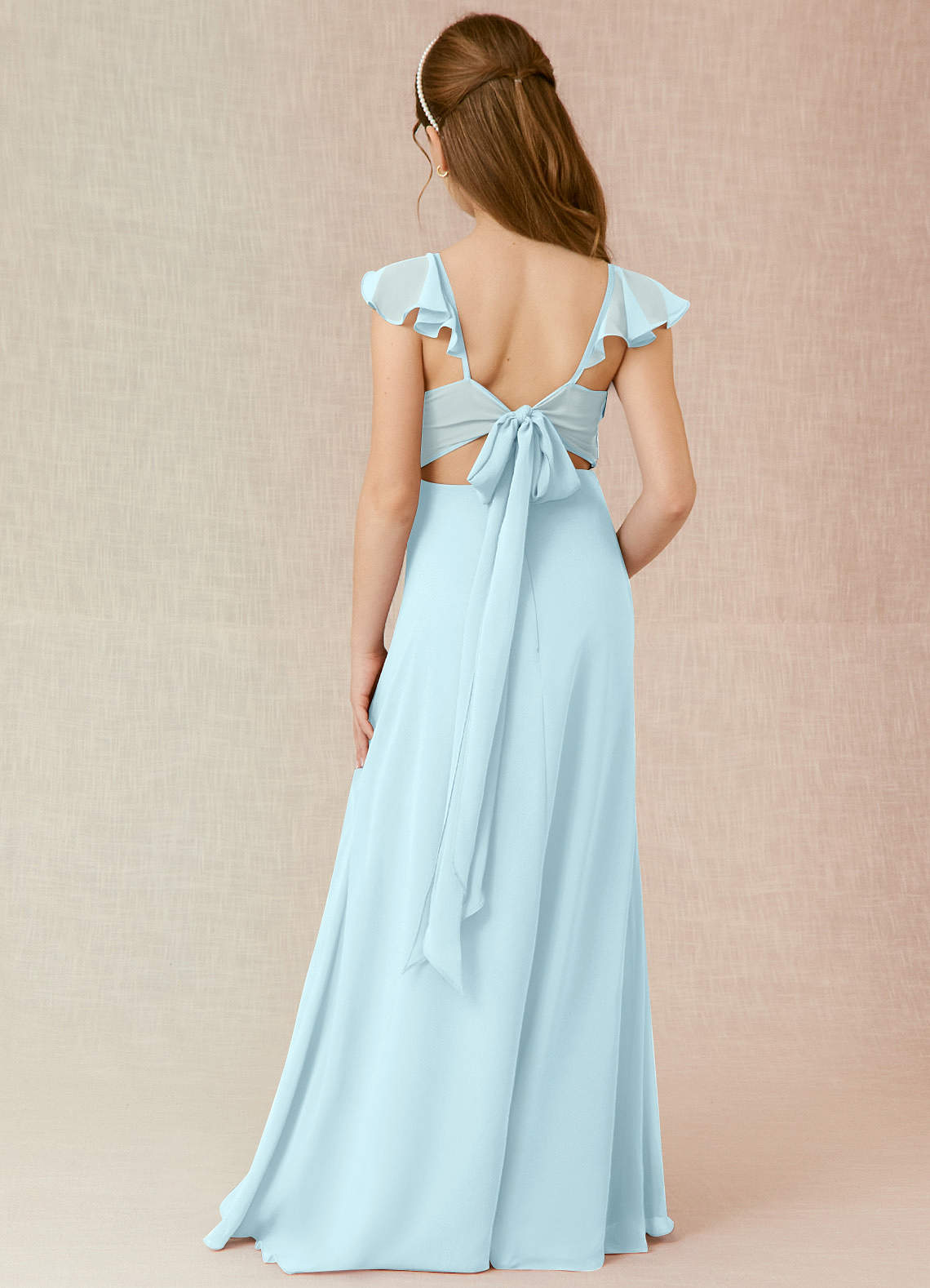 A라인 쉬폰 플로어 길이 주니어 신부 들러리 드레스