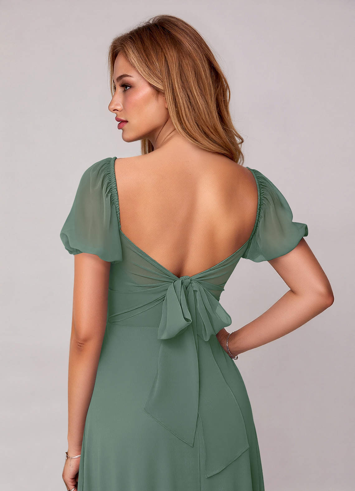 A라인 포켓이 있는 쉬폰 바닥 길이 드레스