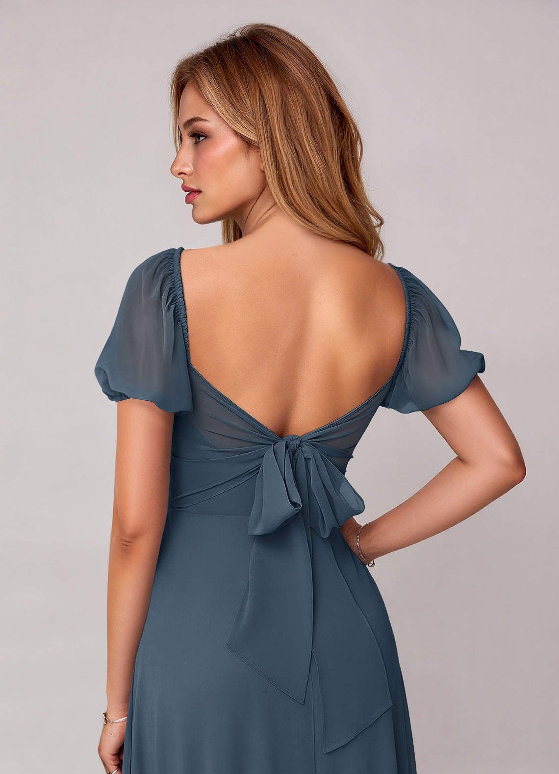 A라인 포켓이 있는 쉬폰 바닥 길이 드레스