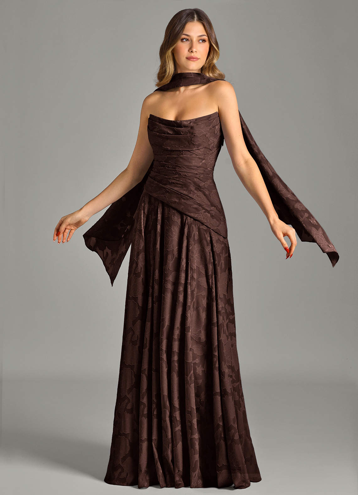 A라인 스트랩리스 플로럴 번아웃 바닥 길이 드레스