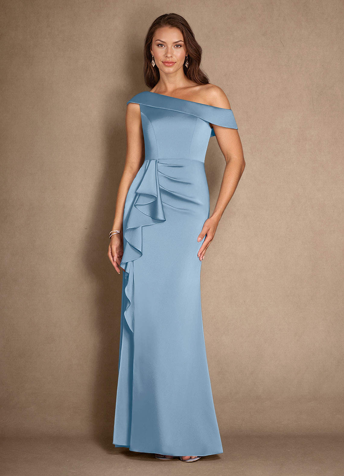 A라인 주름진 스트레치 새틴 플로어 길이 드레스