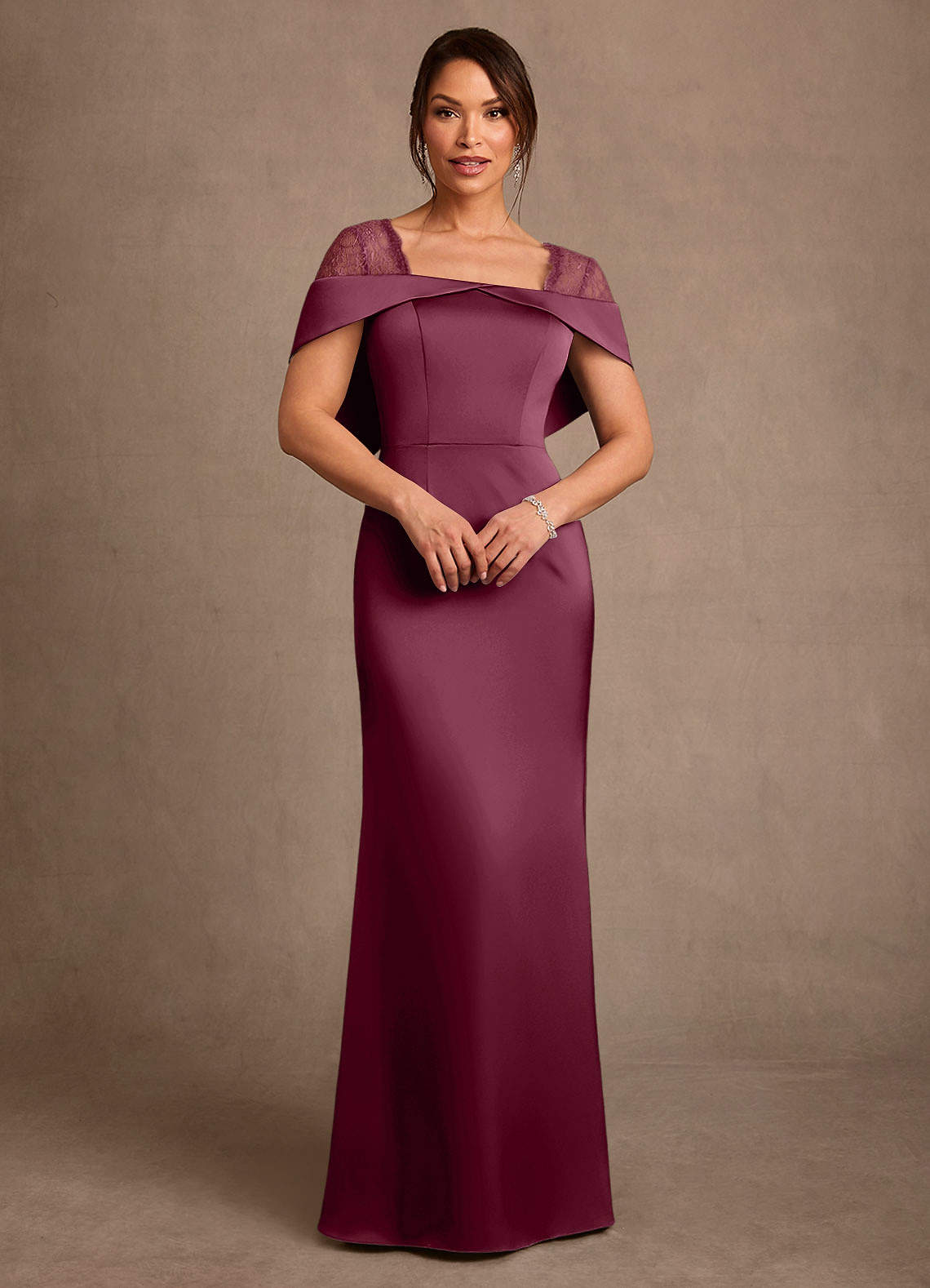 쉬스 레이스 스트레치 새틴 플로어 길이 드레스
