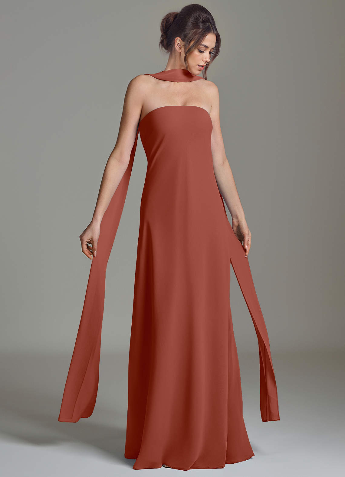 Azazie Ilana 신부 들러리 드레스 A라인 스트랩리스 쉬폰 바닥 길이 드레스 image1