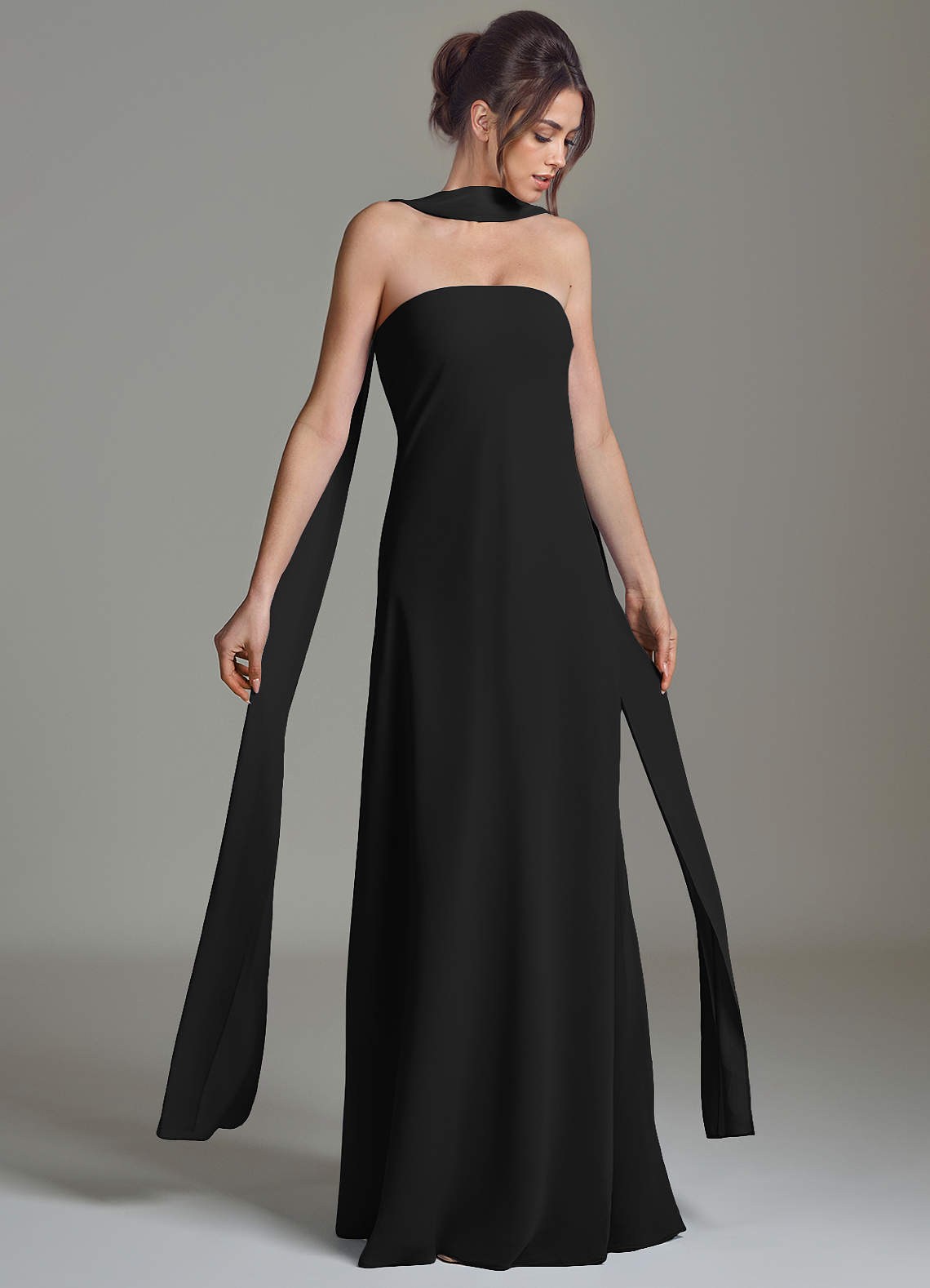 A라인 스트랩리스 쉬폰 바닥 길이 드레스