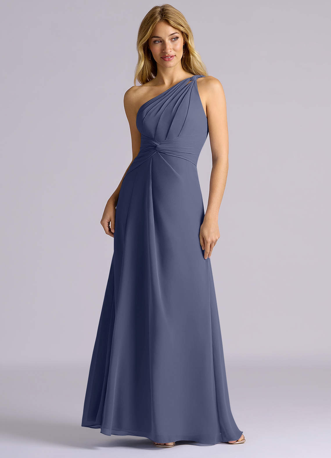A라인 한쪽 어깨 쉬폰 바닥 길이 드레스