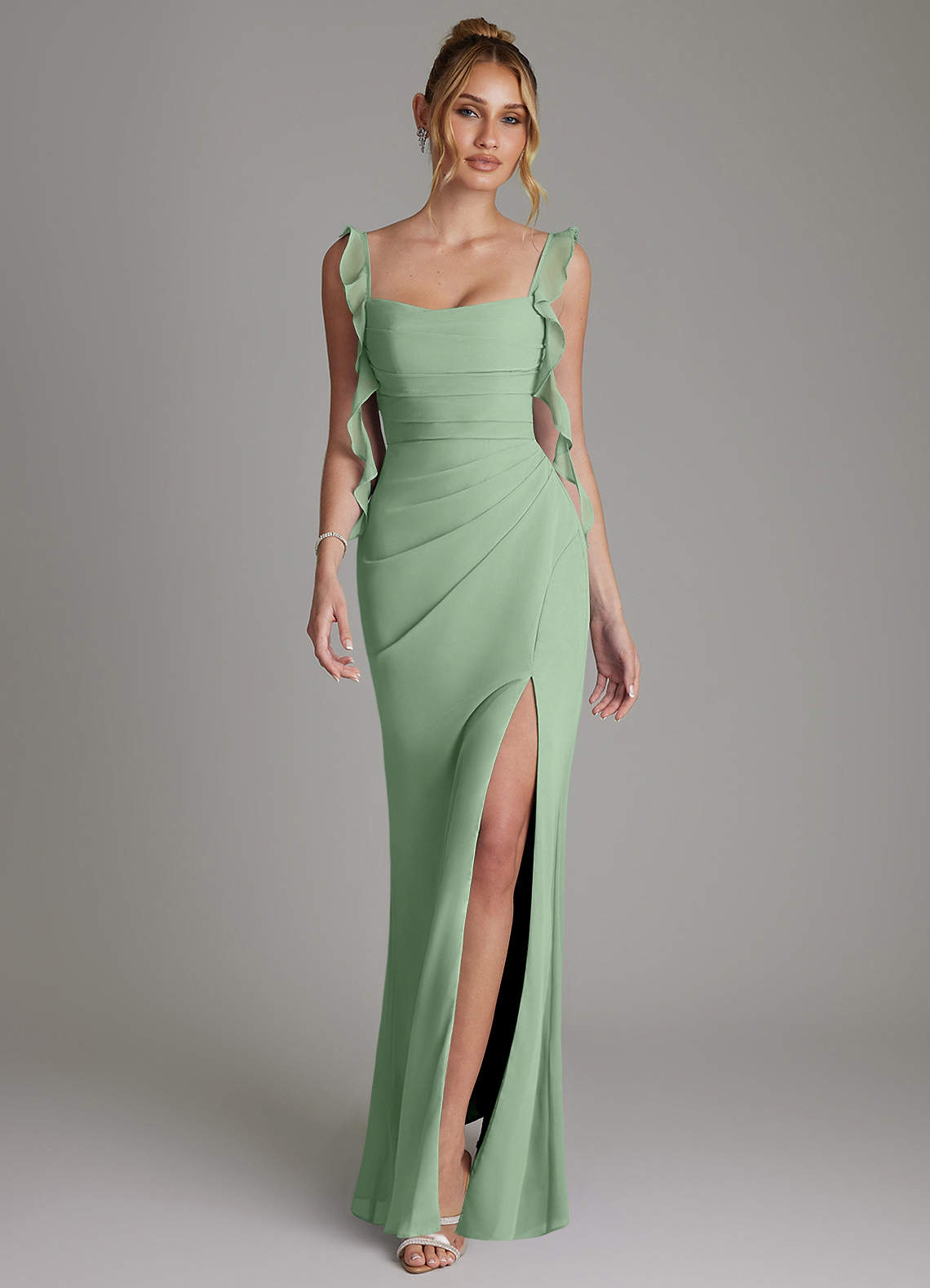 인어 코르셋 쉬폰 바닥 길이 드레스