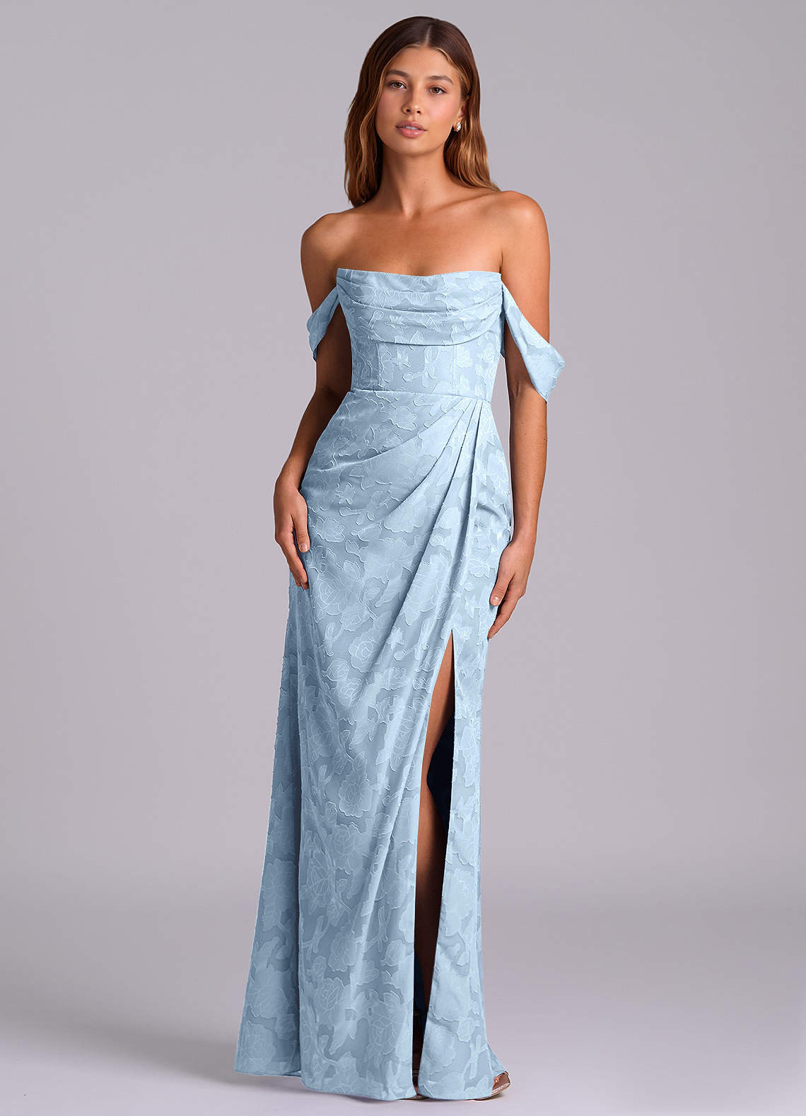 인어 오프 더 숄더 플로럴 번아웃 바닥 길이 드레스