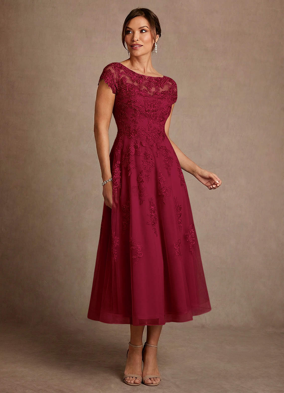 A라인 레이스 티 길이 드레스