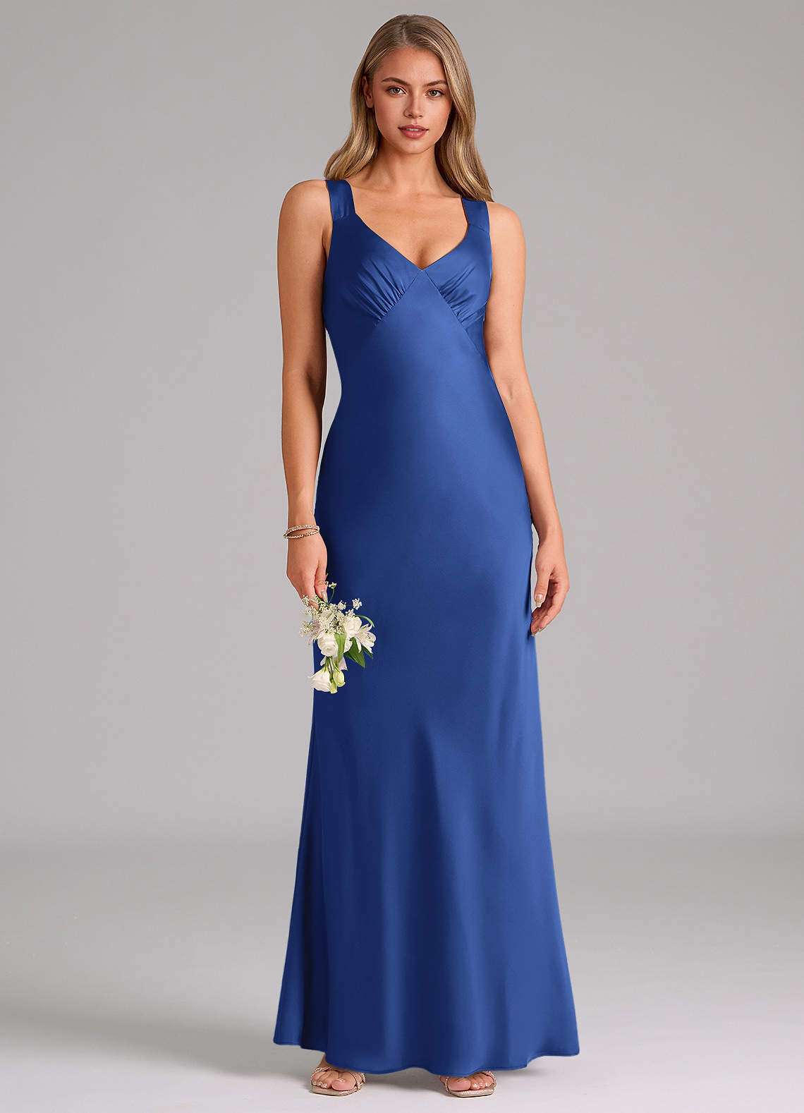 A라인 주름진 스트레치 새틴 바닥 길이 드레스
