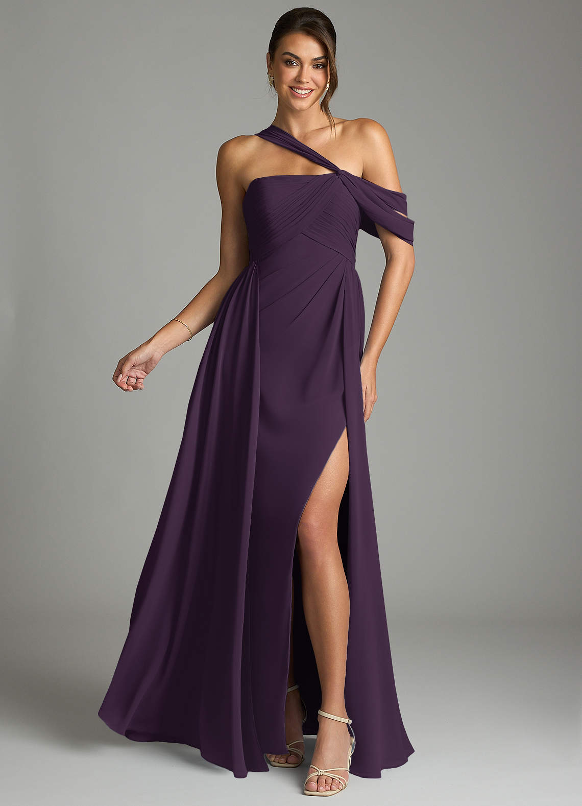 A라인 오프 더 숄더 쉬폰 바닥 길이 드레스