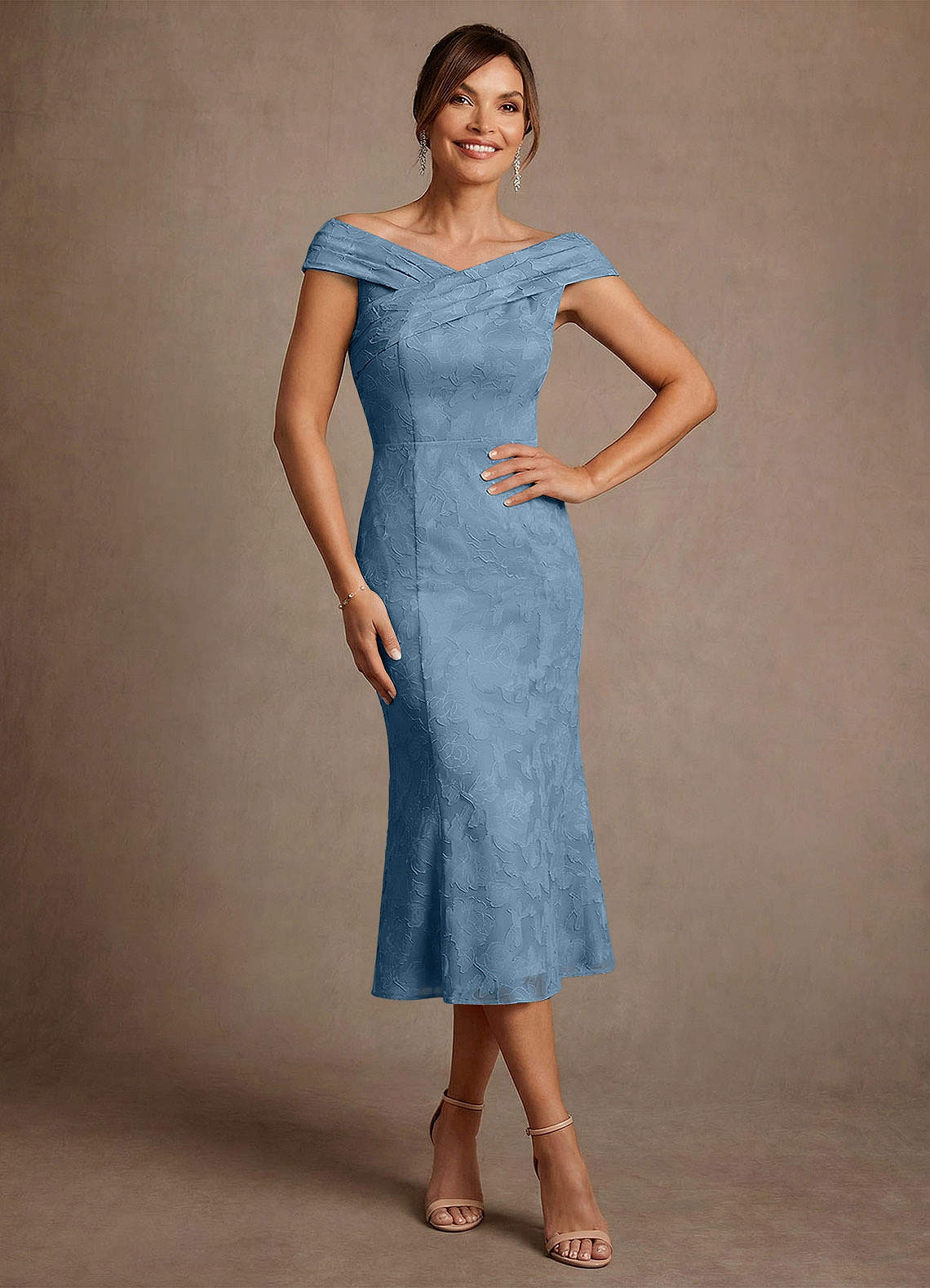 쉬스 주름진 플로럴 번아웃 티 길이 드레스