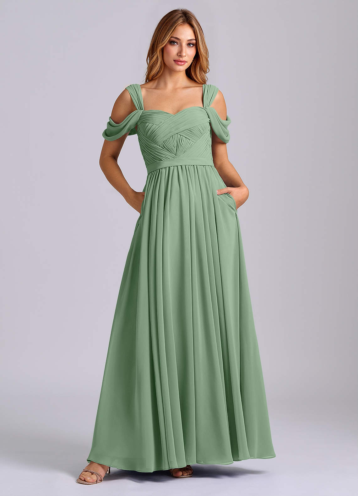 A라인 오프 더 숄더 쉬폰 바닥 길이 드레스