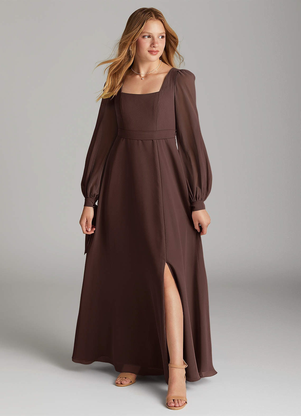 A라인 포켓이 있는 쉬폰 플로어 길이 주니어 신부 들러리 드레스
