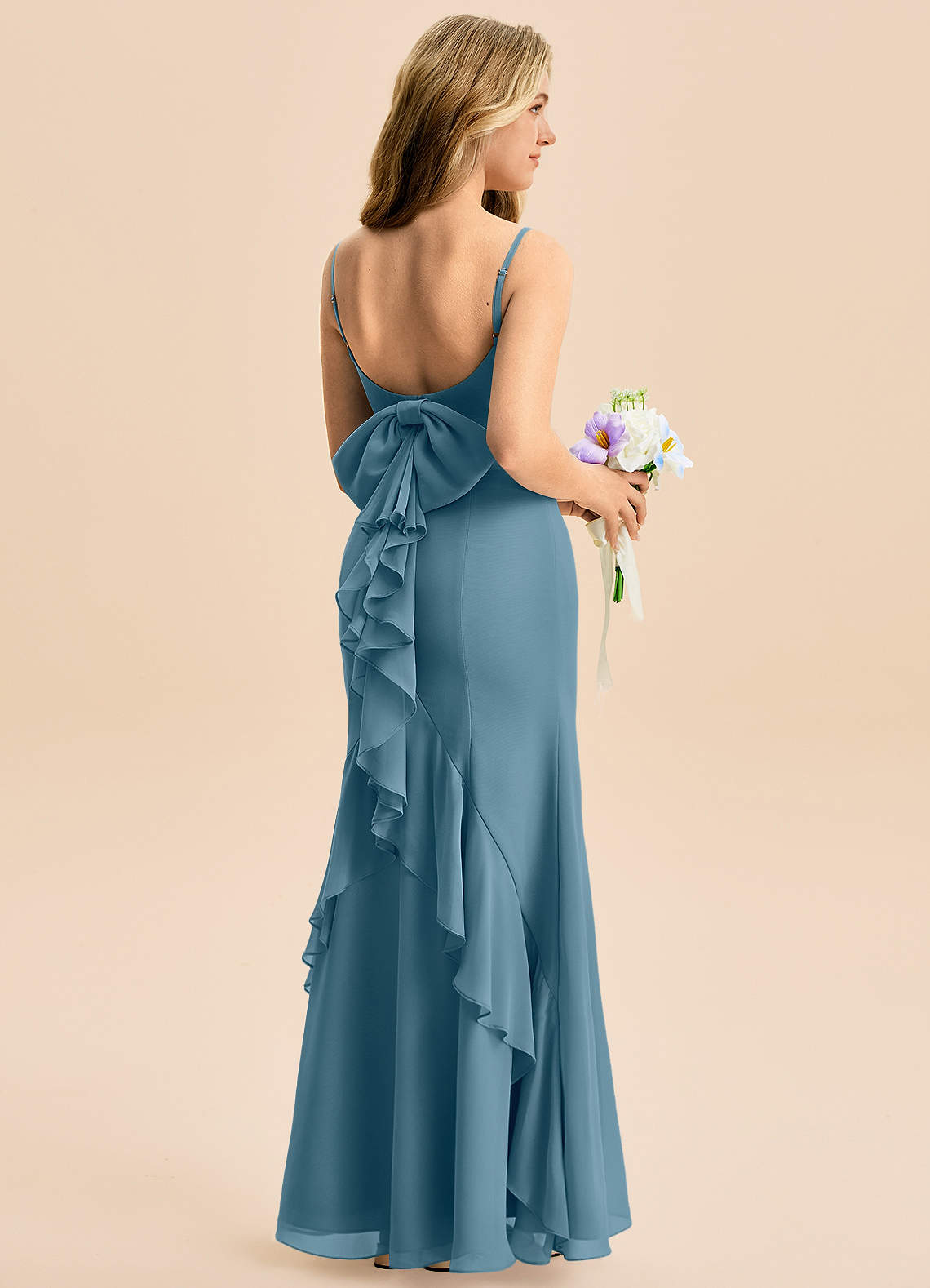 인어 절하다 쉬폰 플로어 길이 주니어 신부 들러리 드레스