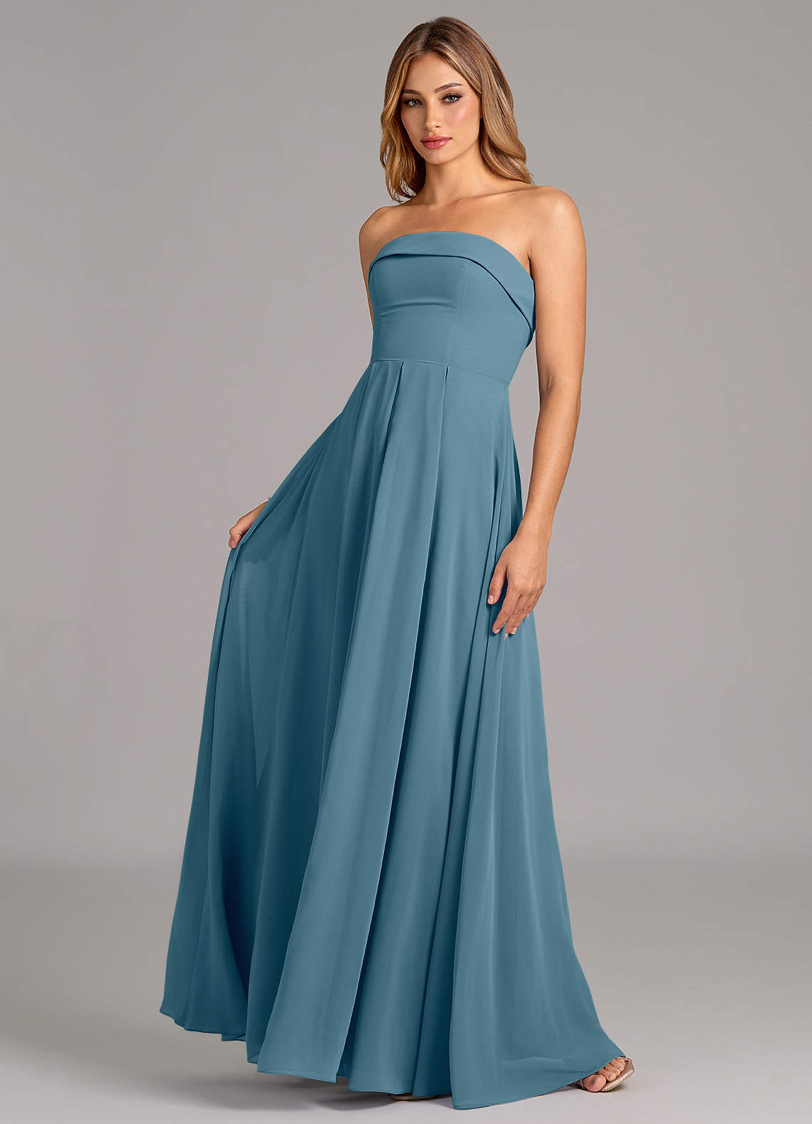 A라인 스트랩리스 쉬폰 바닥 길이 드레스