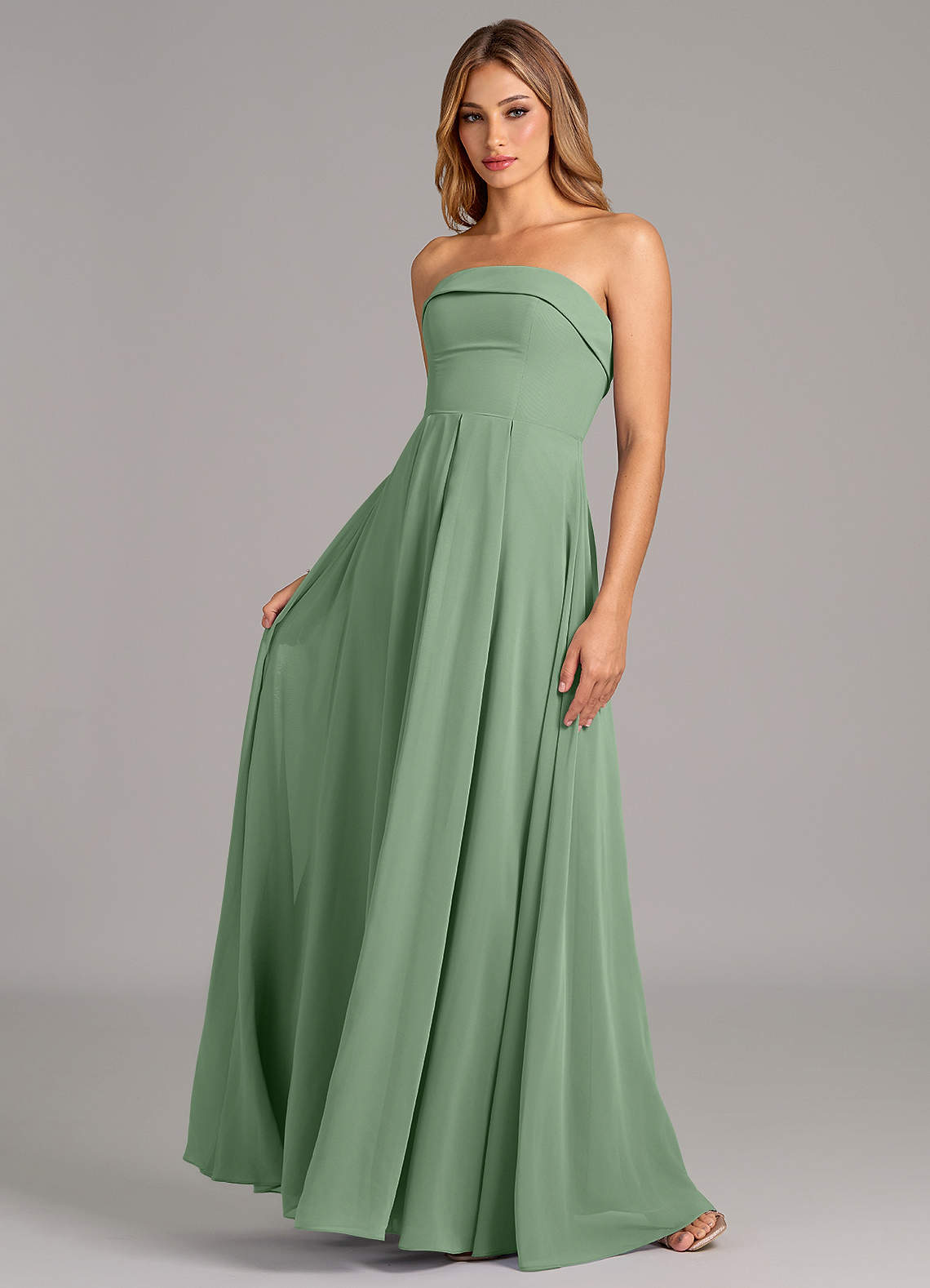 A라인 스트랩리스 쉬폰 바닥 길이 드레스