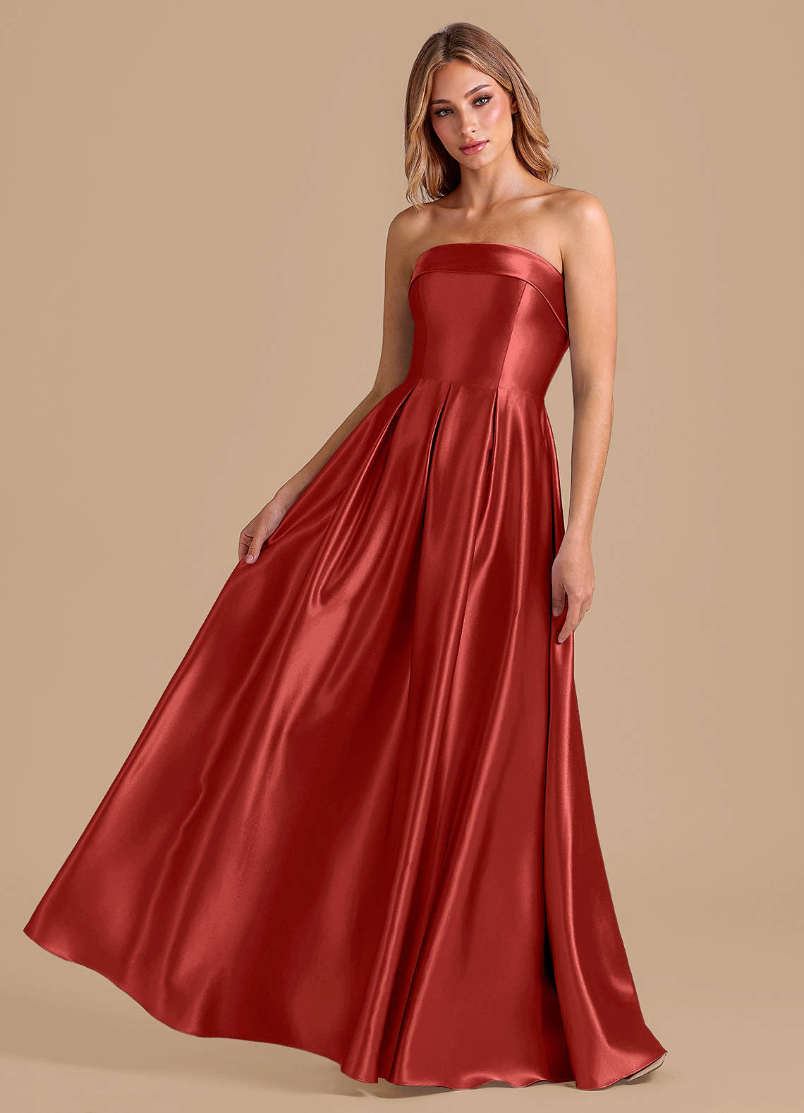 A라인 주름진 메탈릭 새틴 바닥 길이 드레스