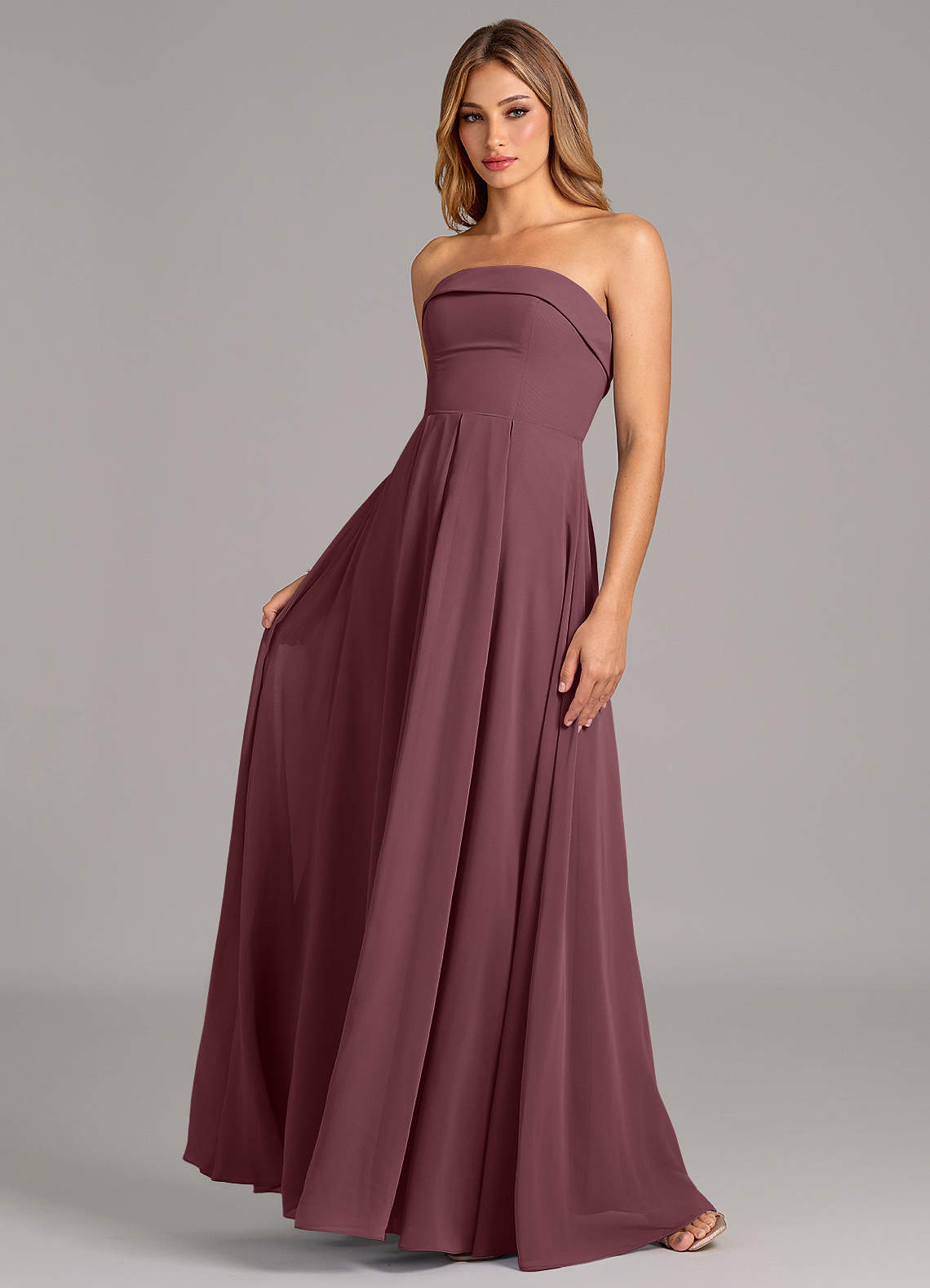 A라인 스트랩리스 쉬폰 바닥 길이 드레스
