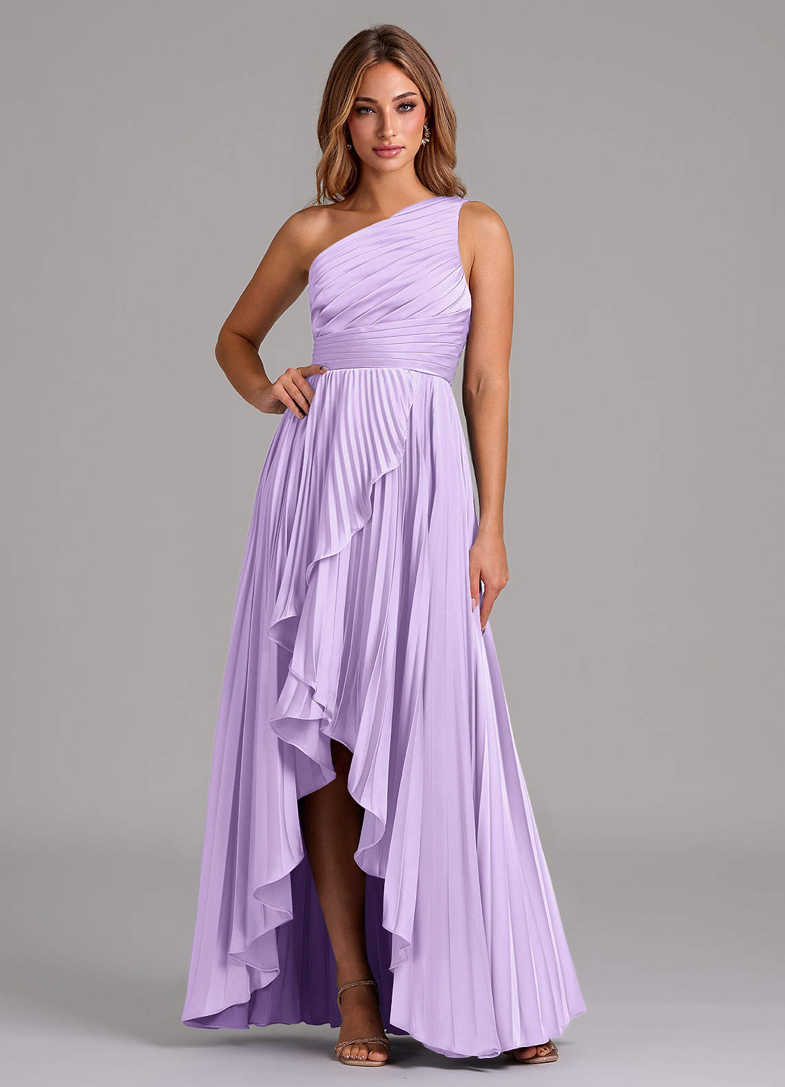 A라인 한쪽 어깨 스트레치 새틴 비대칭 드레스