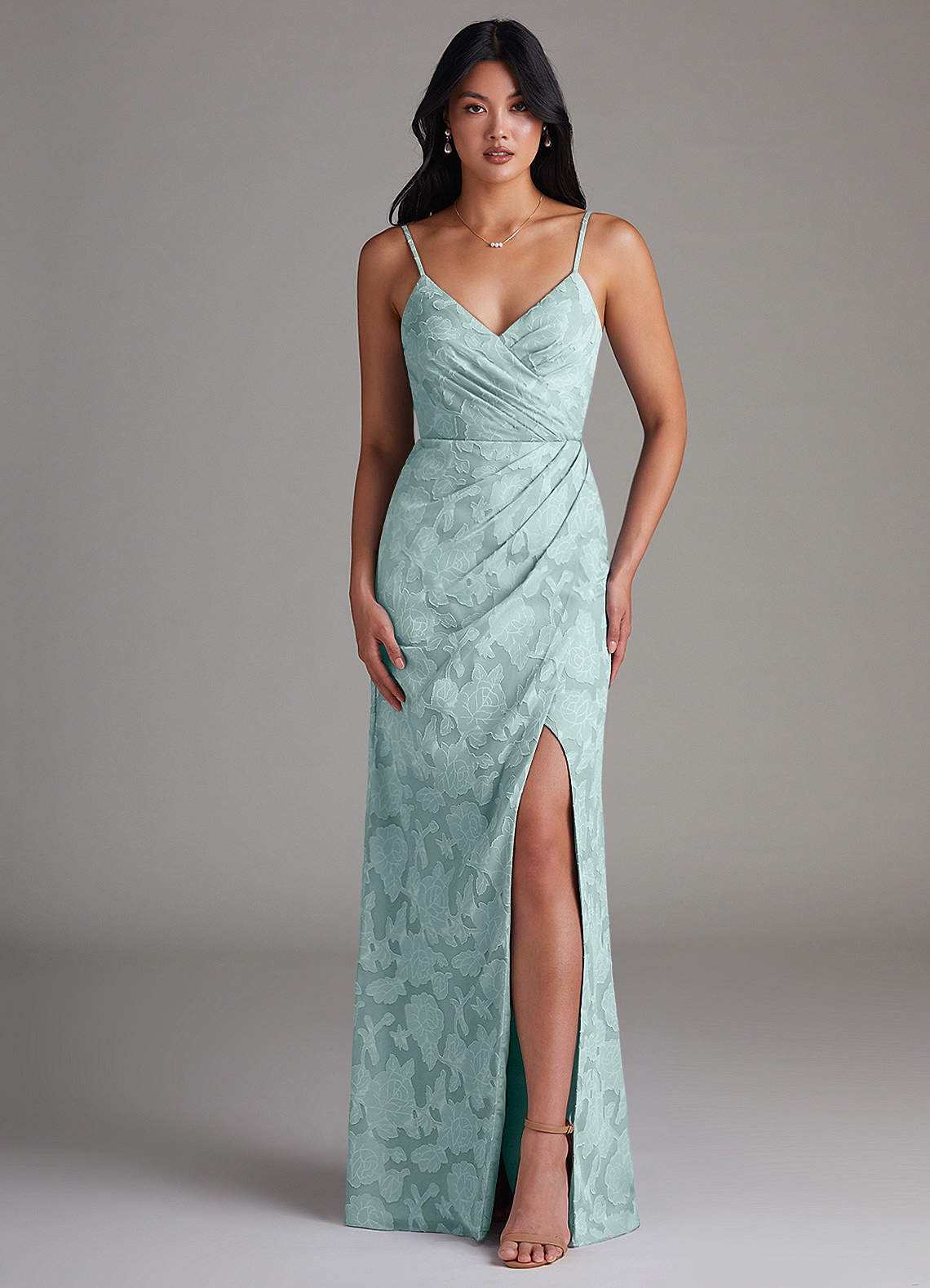 쉬스 주름진 플로럴 번아웃 바닥 길이 드레스