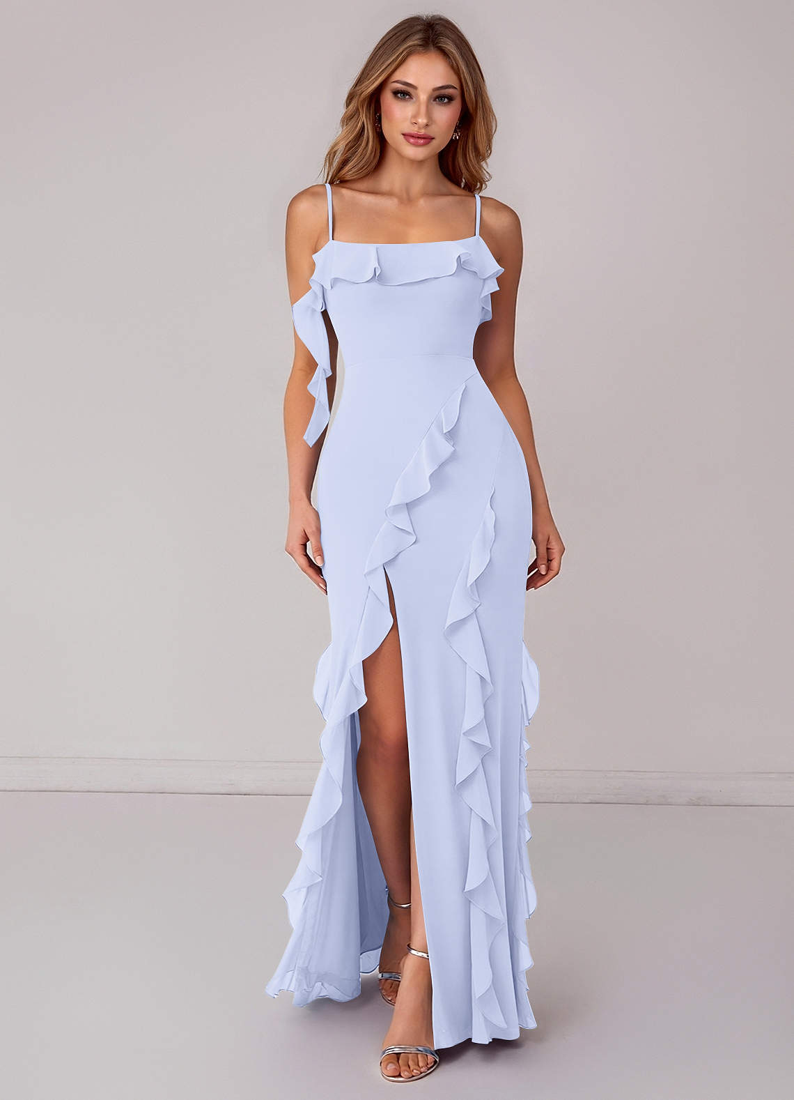 쉬스 셔링 쉬폰 바닥 길이 드레스