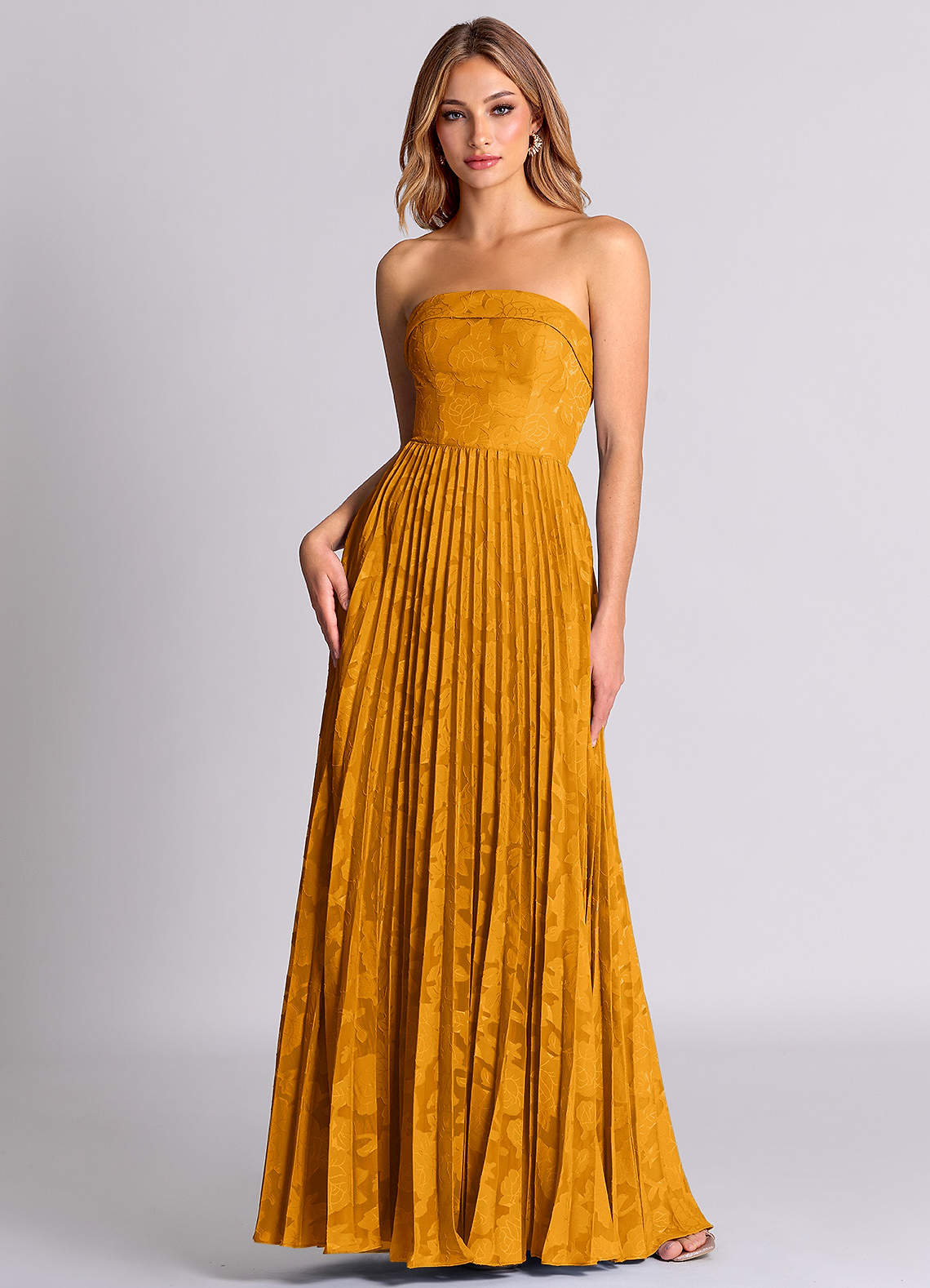 A라인 스트랩리스 플로럴 번아웃 바닥 길이 드레스