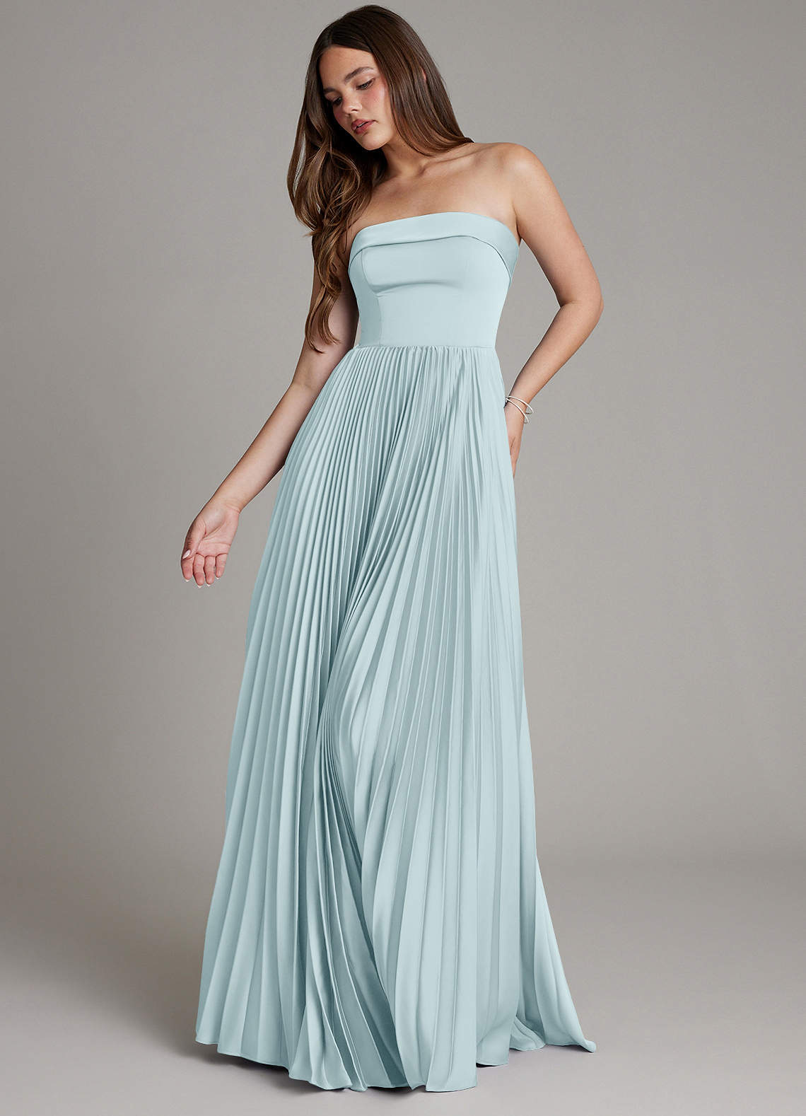 A라인 주름진 스트레치 새틴 바닥 길이 드레스