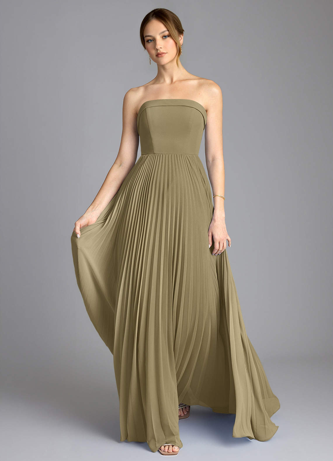 A라인 스트랩리스 쉬폰 바닥 길이 드레스