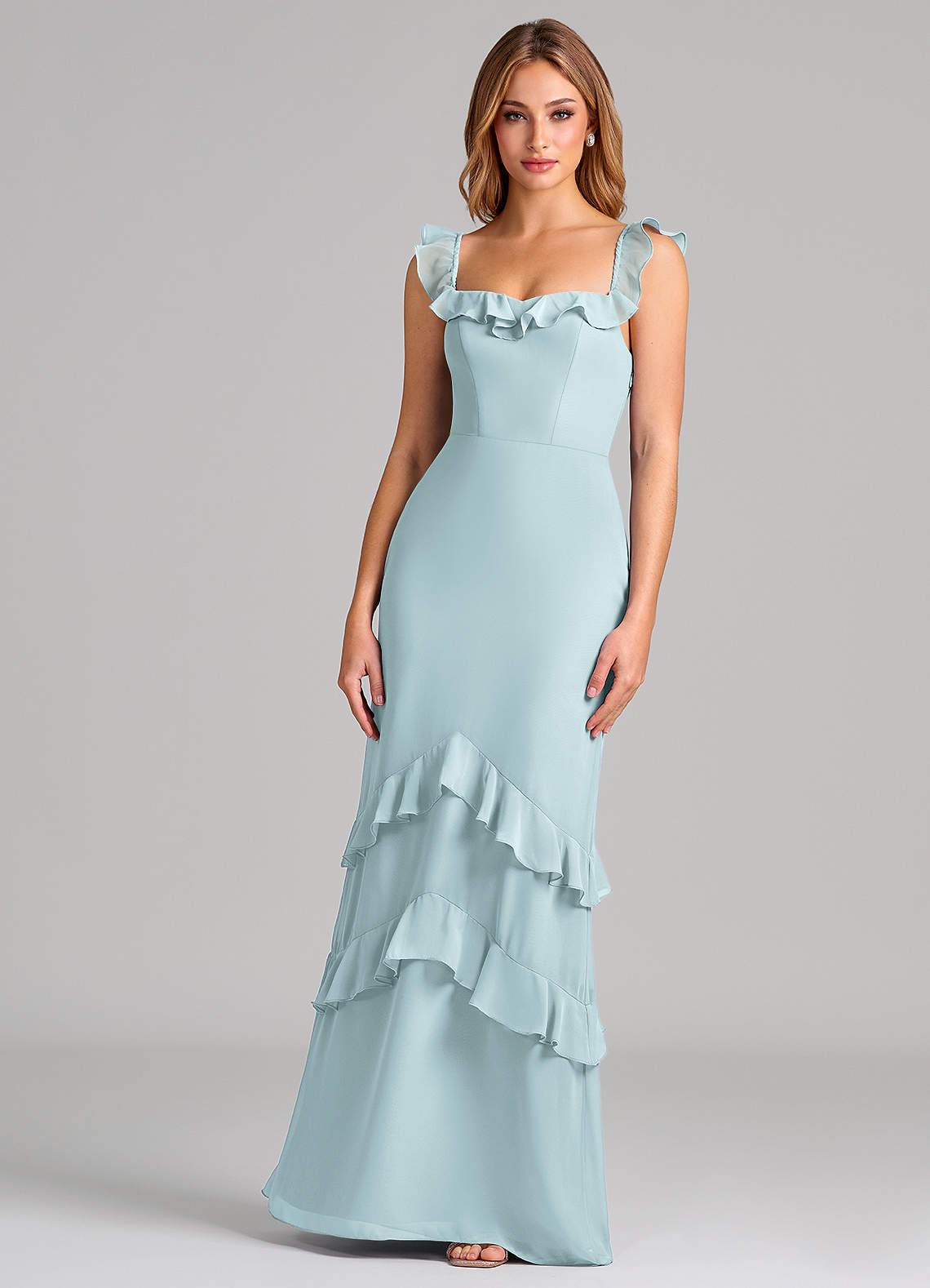 Azazie Marilynn 신부 들러리 드레스 인어 오프 더 숄더 쉬폰 바닥 길이 드레스 image1