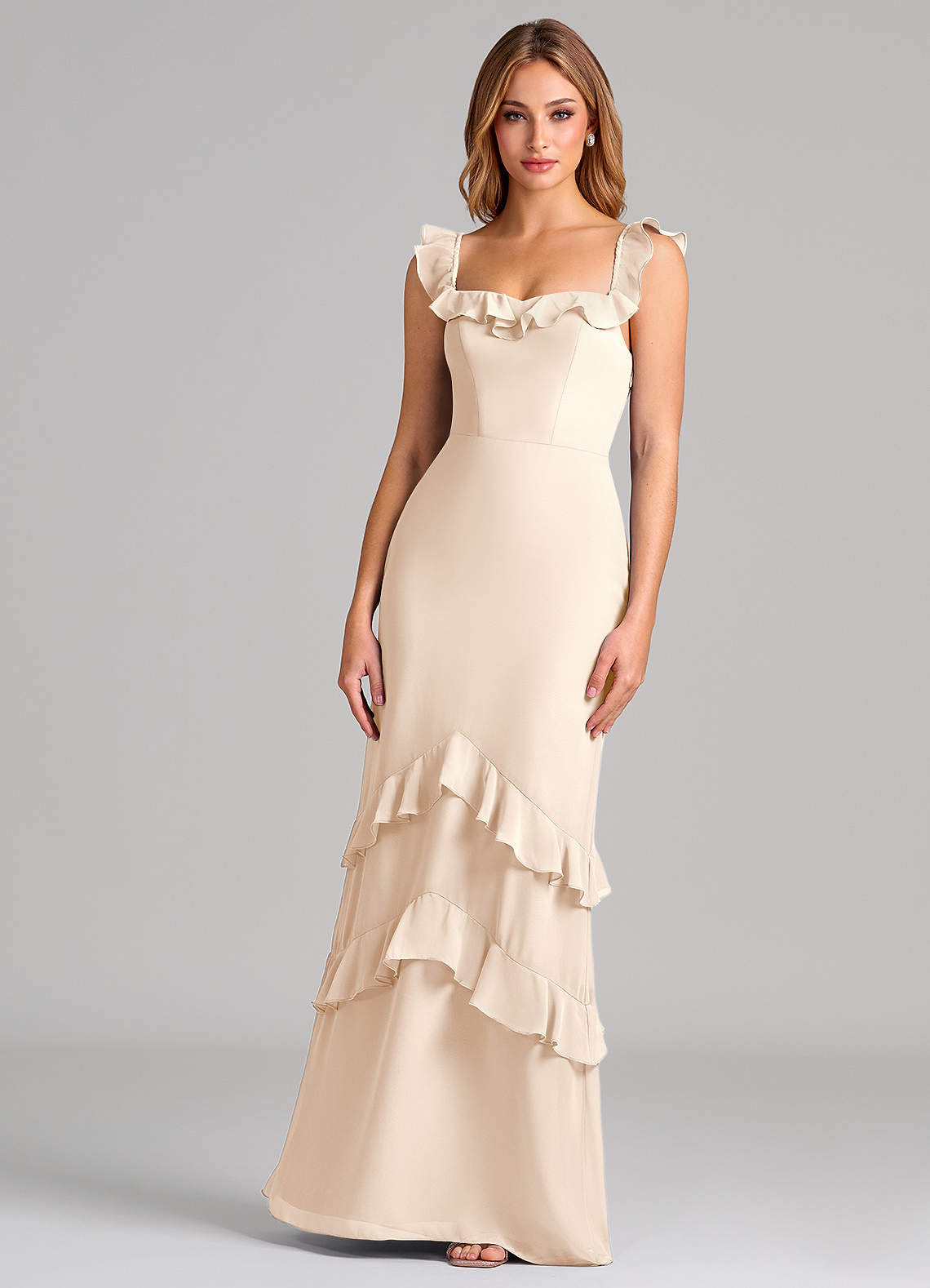인어 오프 더 숄더 쉬폰 바닥 길이 드레스