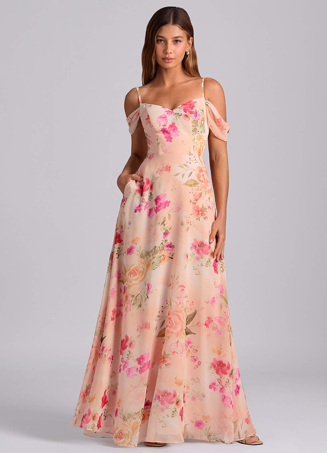A라인 오프 더 숄더 쉬폰 바닥 길이 드레스