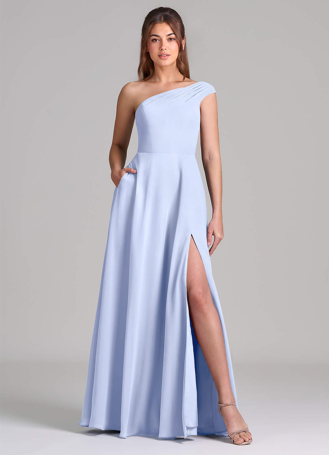 A라인 오프 더 숄더 쉬폰 바닥 길이 드레스