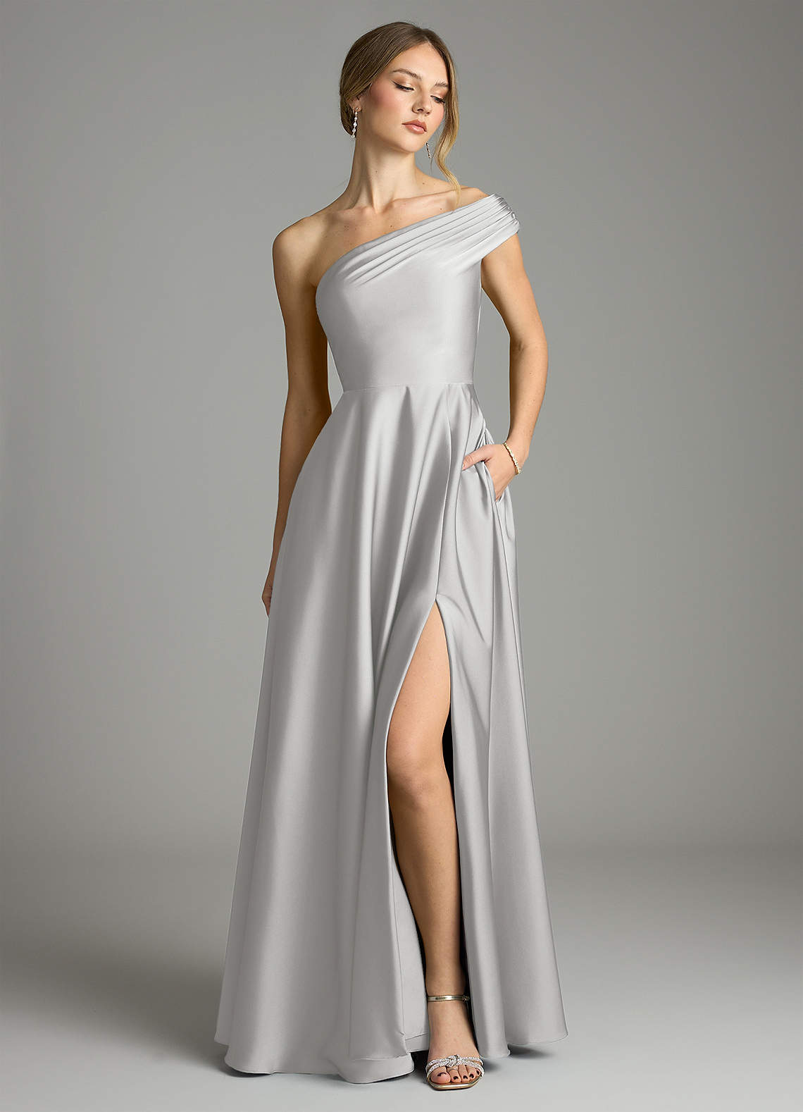 A라인 오프 더 숄더 스트레치 새틴 바닥 길이 드레스