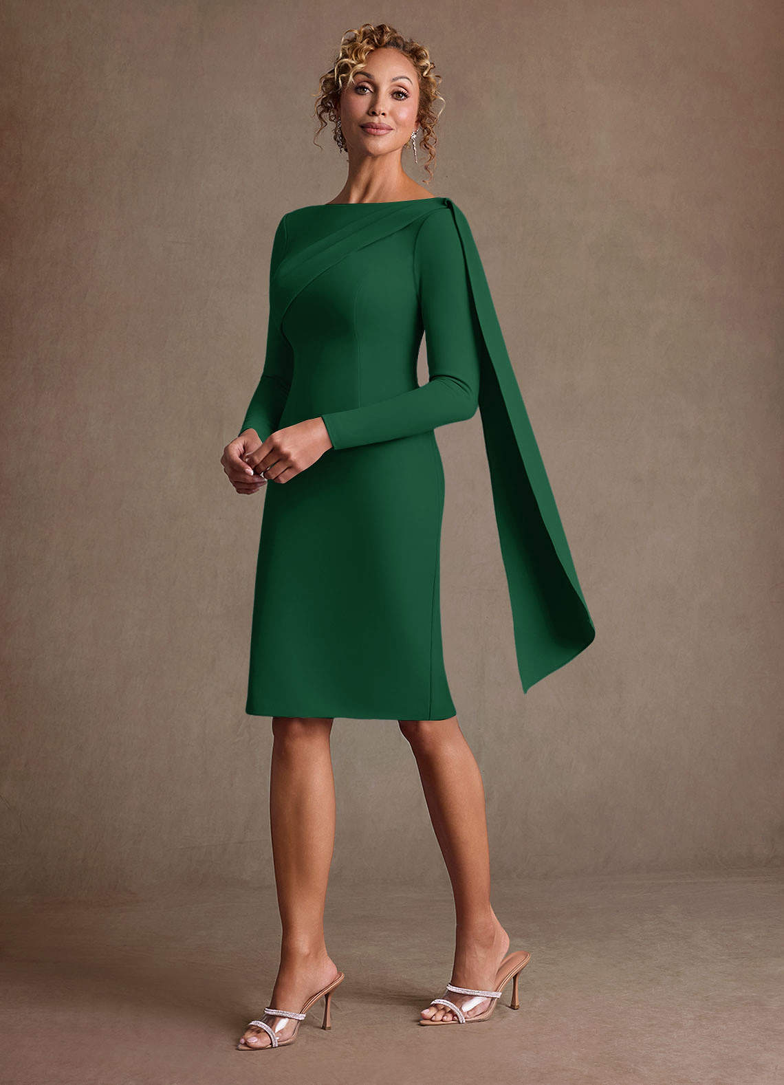 컬럼 주름진 스트레치 크레이프 무릎 길이 드레스