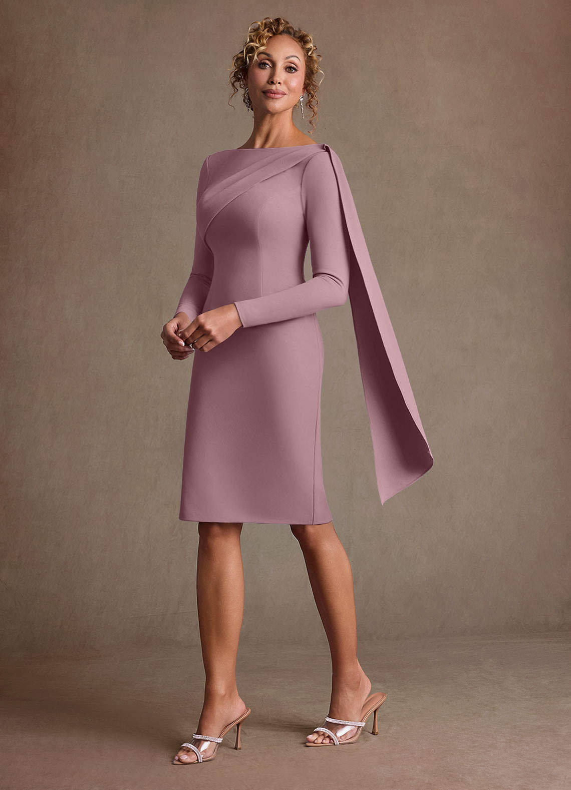 컬럼 주름진 스트레치 크레이프 무릎 길이 드레스
