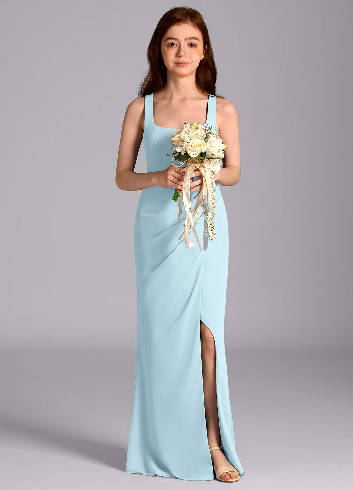 인어 주름진 쉬폰 플로어 길이 주니어 신부 들러리 드레스